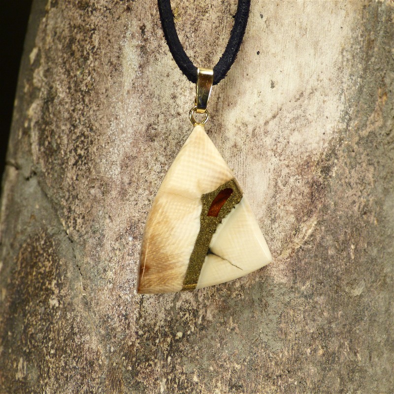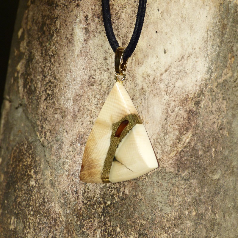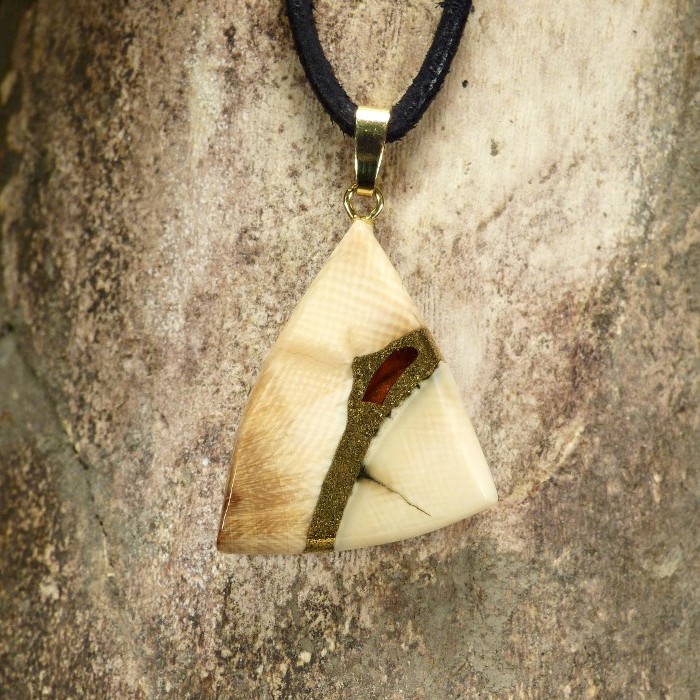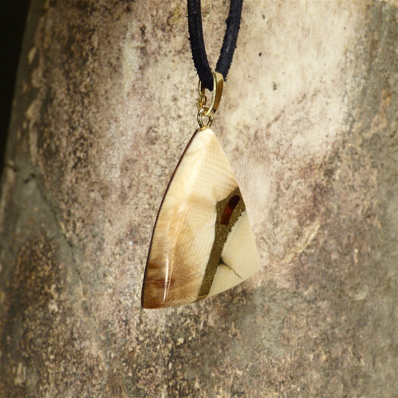 Anhänger aus cremefarbenem Mammut-Elfenbein mit schöner Maserung und einer Intarsie aus echtem
