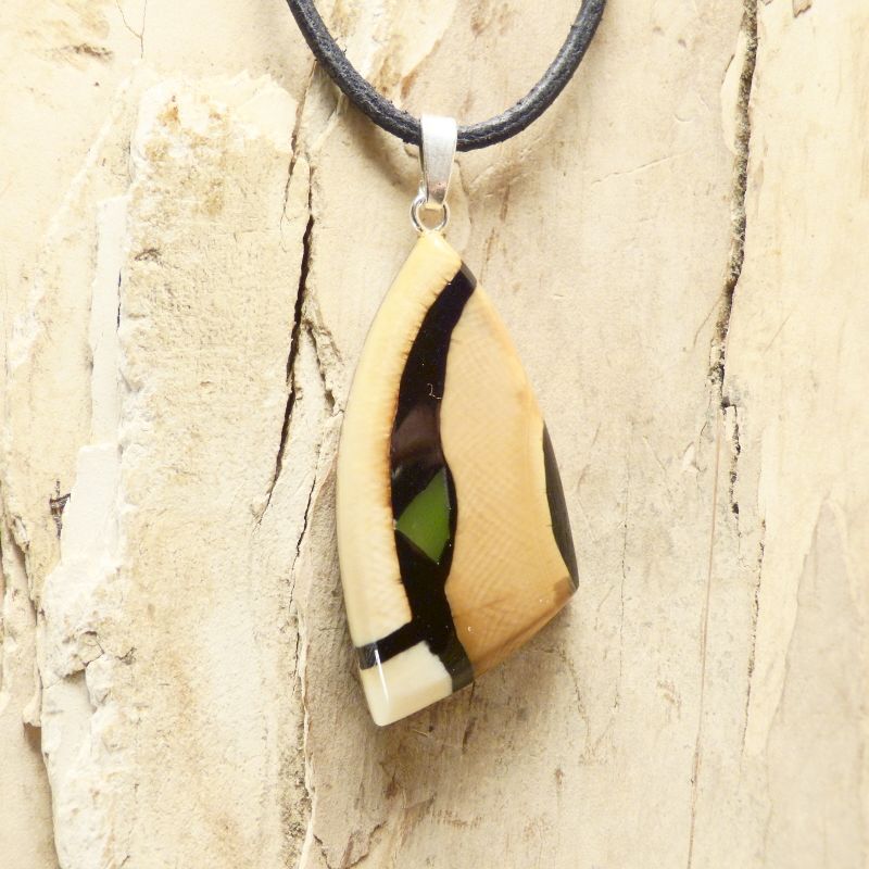 Schön strukturierter Anhänger aus braunem Mammut-Elfenbein mit feiner