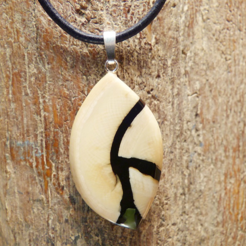 Mammut-Elfenbein mit eingearbeiteter Intarsie aus rekonstruierter Jade.