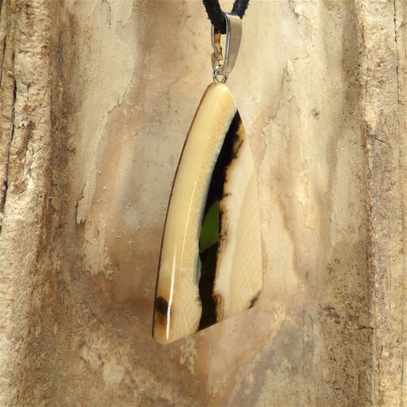 Anhänger aus cremefarbenem Mammut-Elfenbein mit starker Maserung. Als