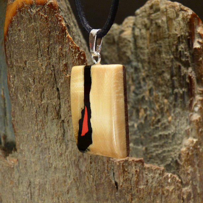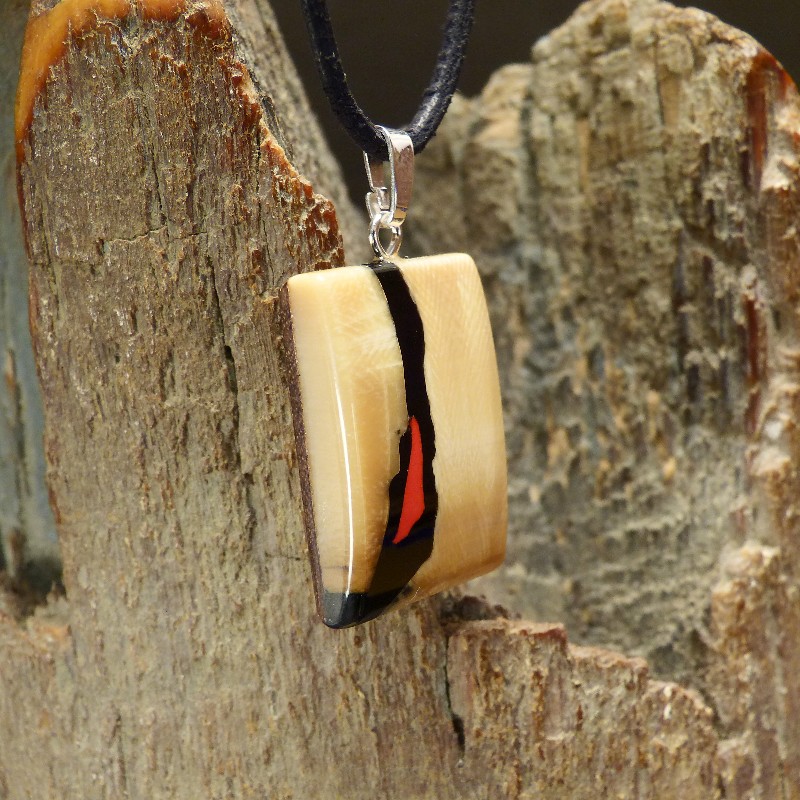 Eckiger Anhänger aus bräunlichem Mammut-Elfenbein mit schöner Maserung und einer