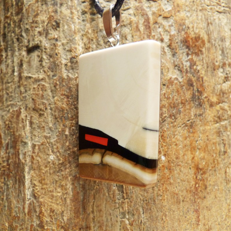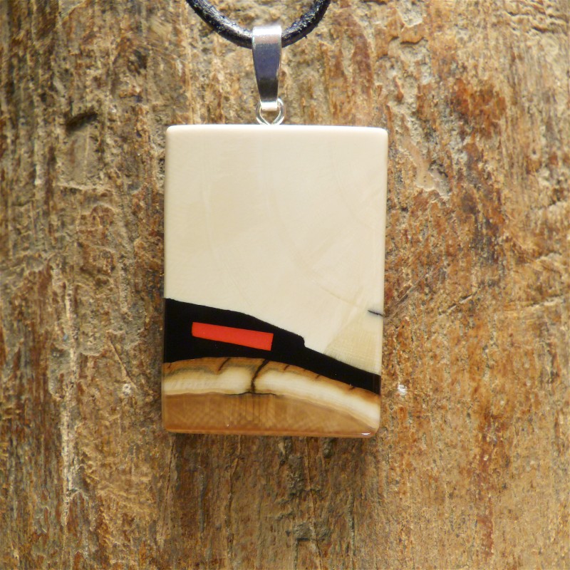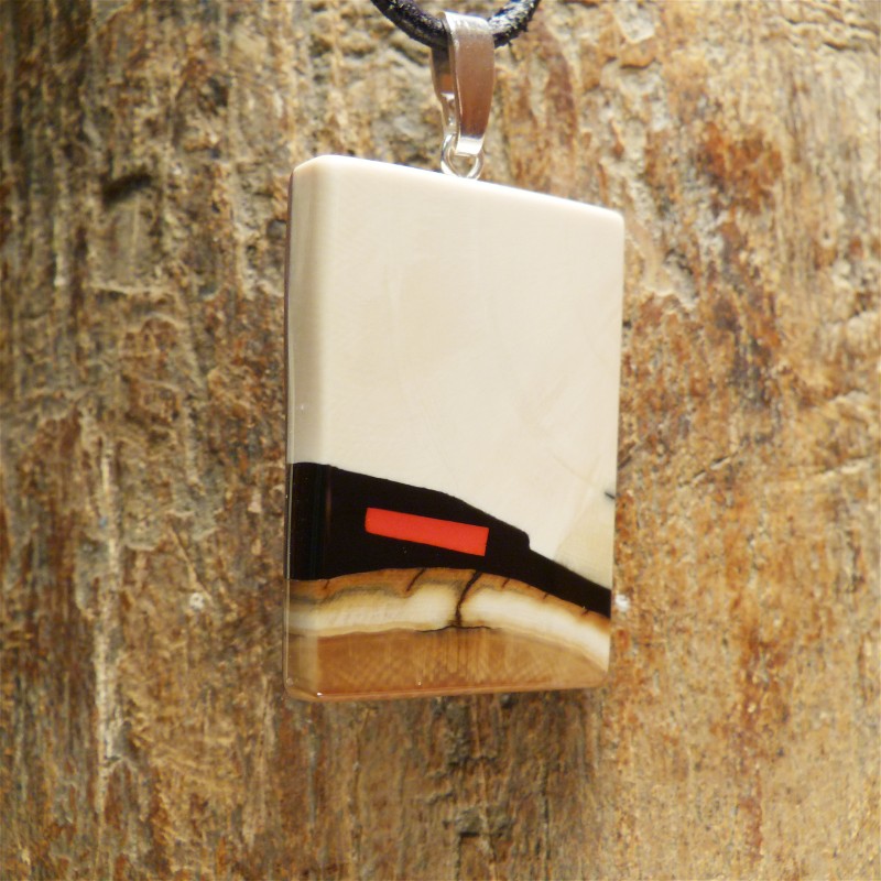Kantig geschliffener Anhänger aus cremefarbenem und braunem Mammut-Elfenbein mit feiner Maserung und