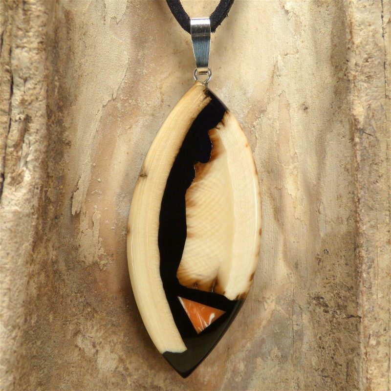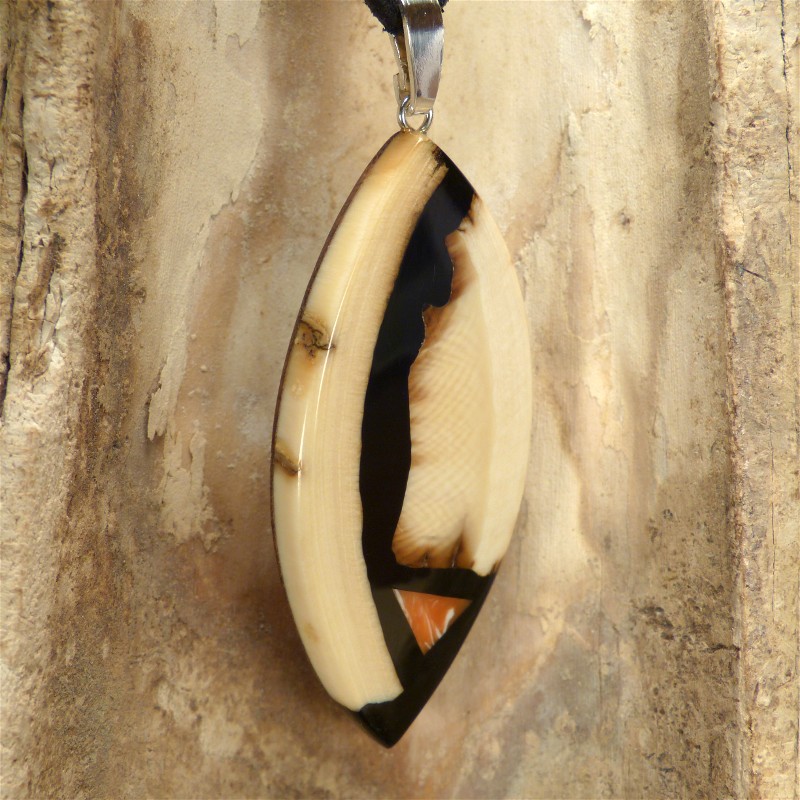 Navetteförmig geschliffener Anhänger aus cremefarbenem