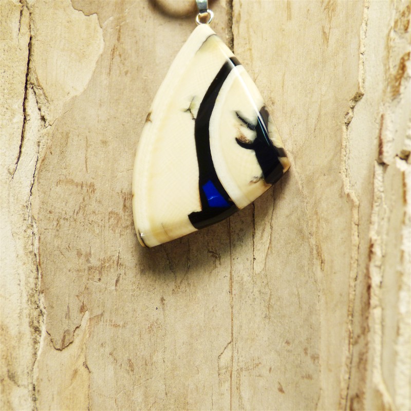 Anhänger aus fein gemasertem Mammut-Elfenbein mit schöner Rindenfärbung, kombiniert