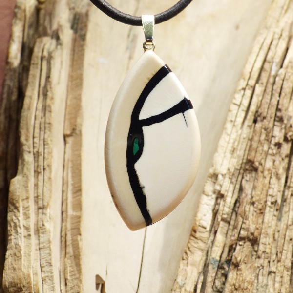 Intarsie wurde ein rekonstruierter Malachit eingearbeitet. Die Öse aus