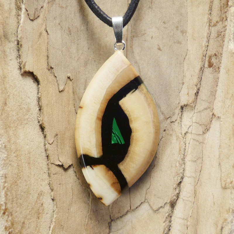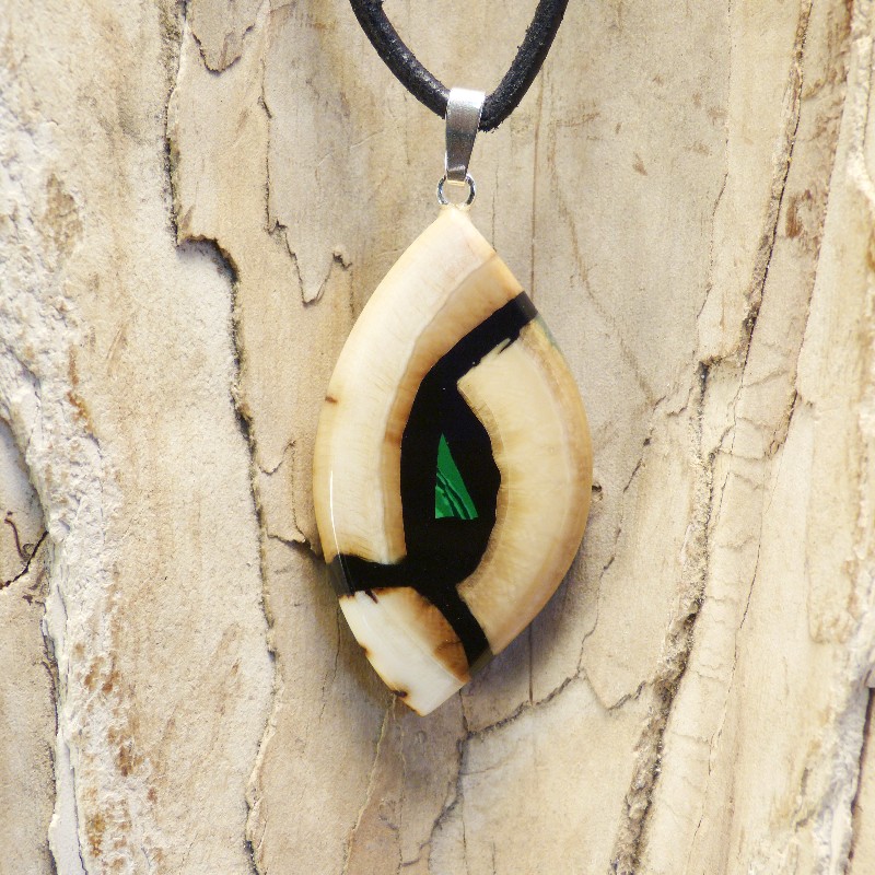 Anhänger aus cremefarbenem und braunem Mammut-Elfenbein.