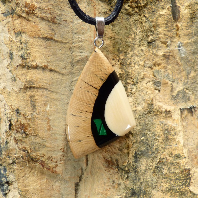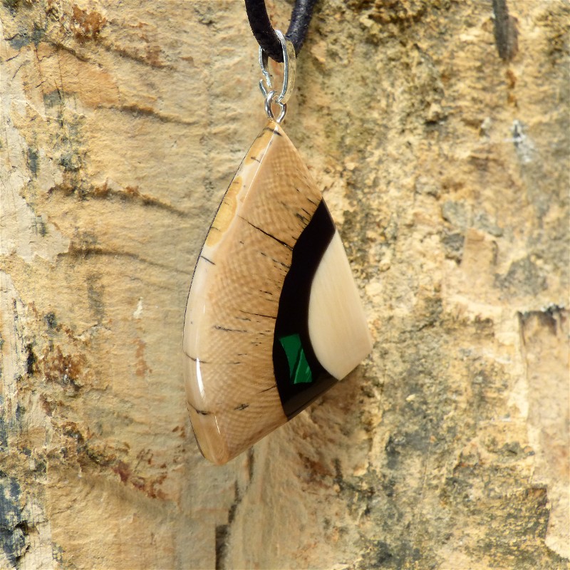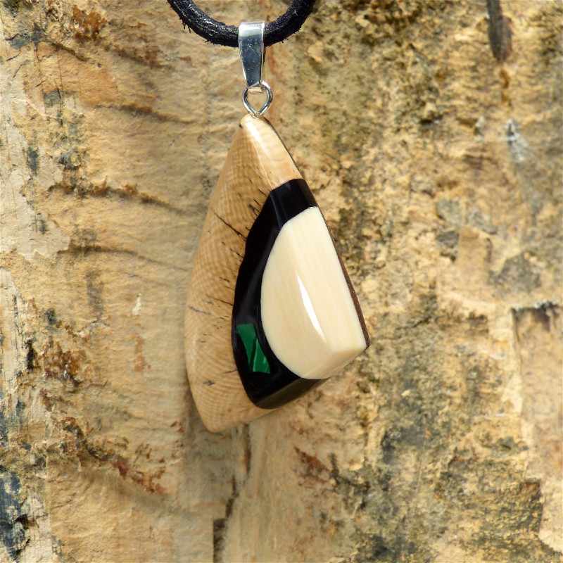 Anhänger aus cremefarbenem und braunem Mammut-Elfenbein mit einer Intarsie aus