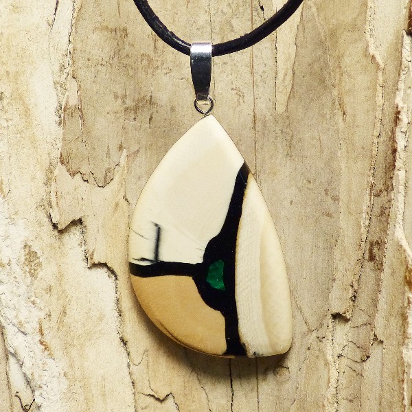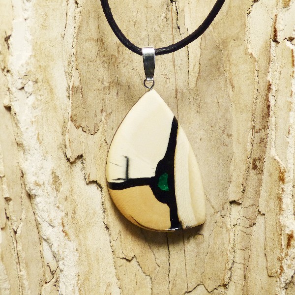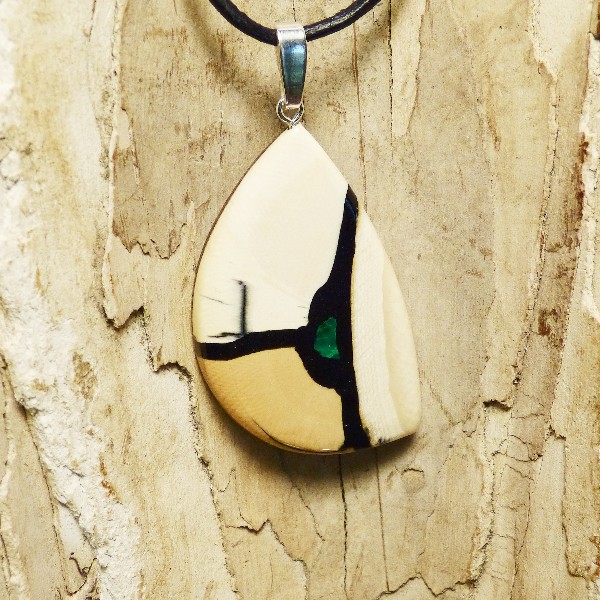 Mammut-Elfenbein und kleiner Intarsie aus Malachit. Die Größe