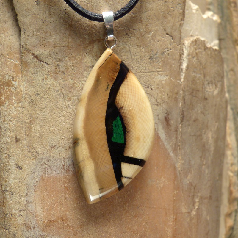 Mammut-Elfenbein mit einer zusätzlichen Intarsie aus rekonstruiertem Malachit.