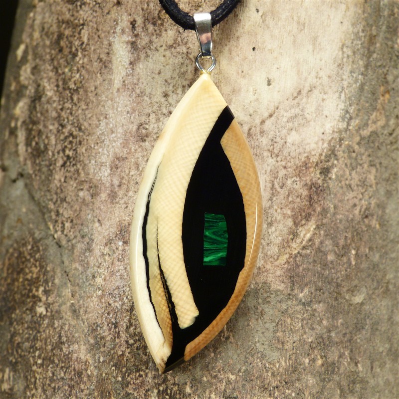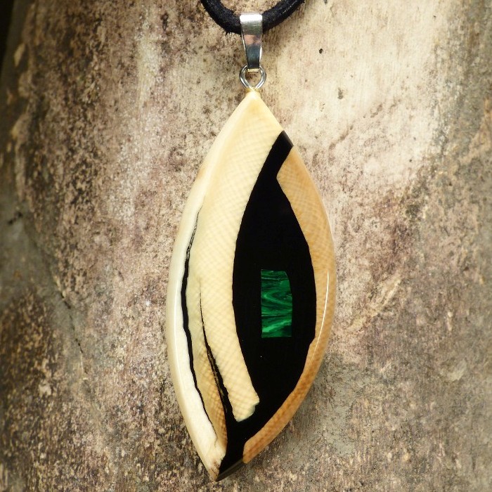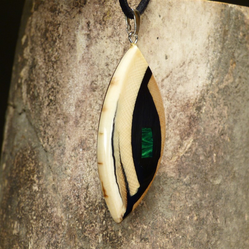 Schön gemaserter Anhänger aus cremefarbenem und braunem Mammut-Elfenbein und einer Intarsie aus