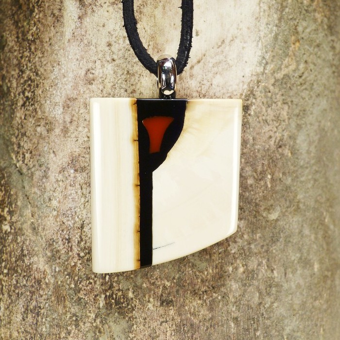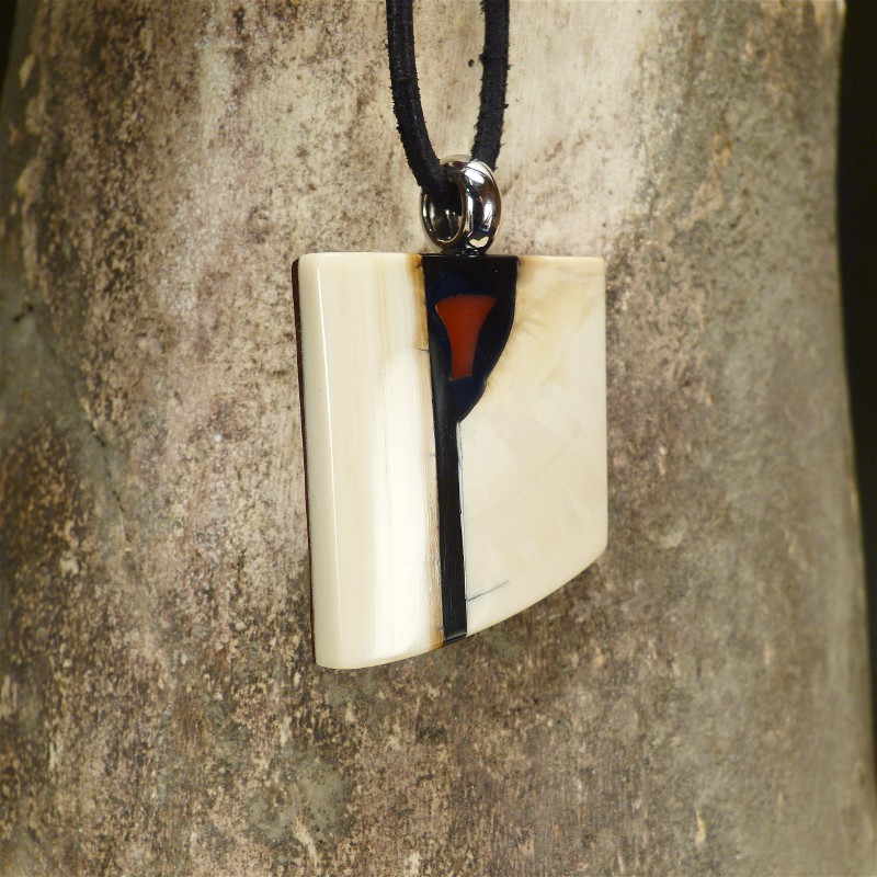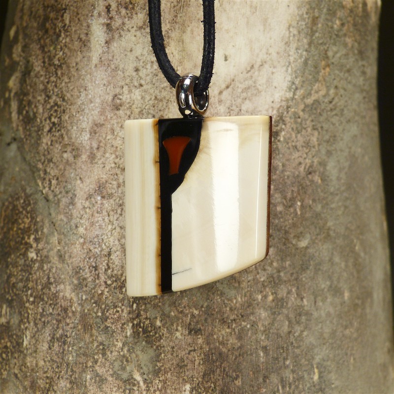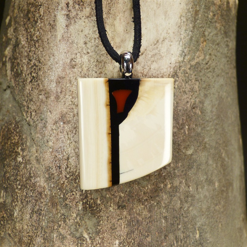 aus cremefarbenem Mammut-Elfenbein mit leichten Färbungen. Als Intarsie wurde