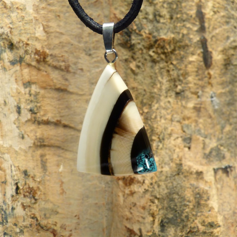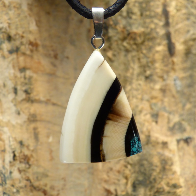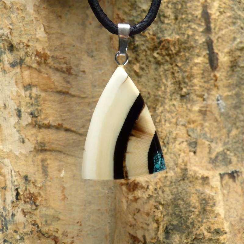 Anhänger aus hellem Mammut-Elfenbein mit einer Intarsie aus