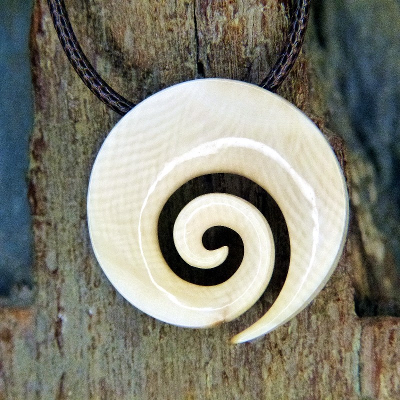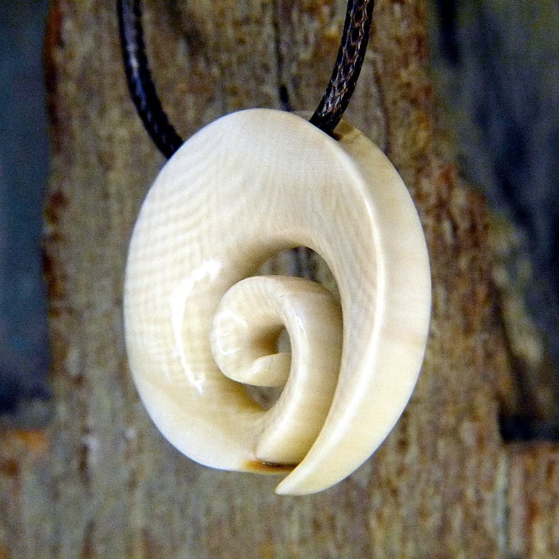 Hei Matau als "Spirale", gefertigt aus cremigem Mammut-Elfenbein mit toller Maserung.