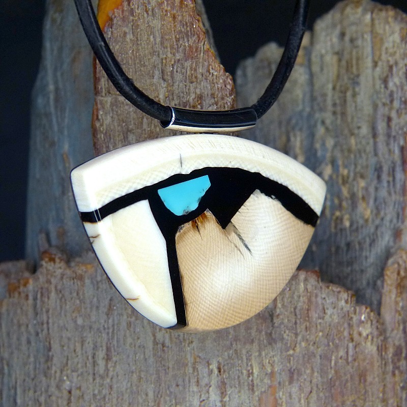 Schöner Queranhänger aus cremefarbenem und bräunlichem Mammut-Elfenbein mit feiner Maserung und einer Intarsie aus echtem Türkis.