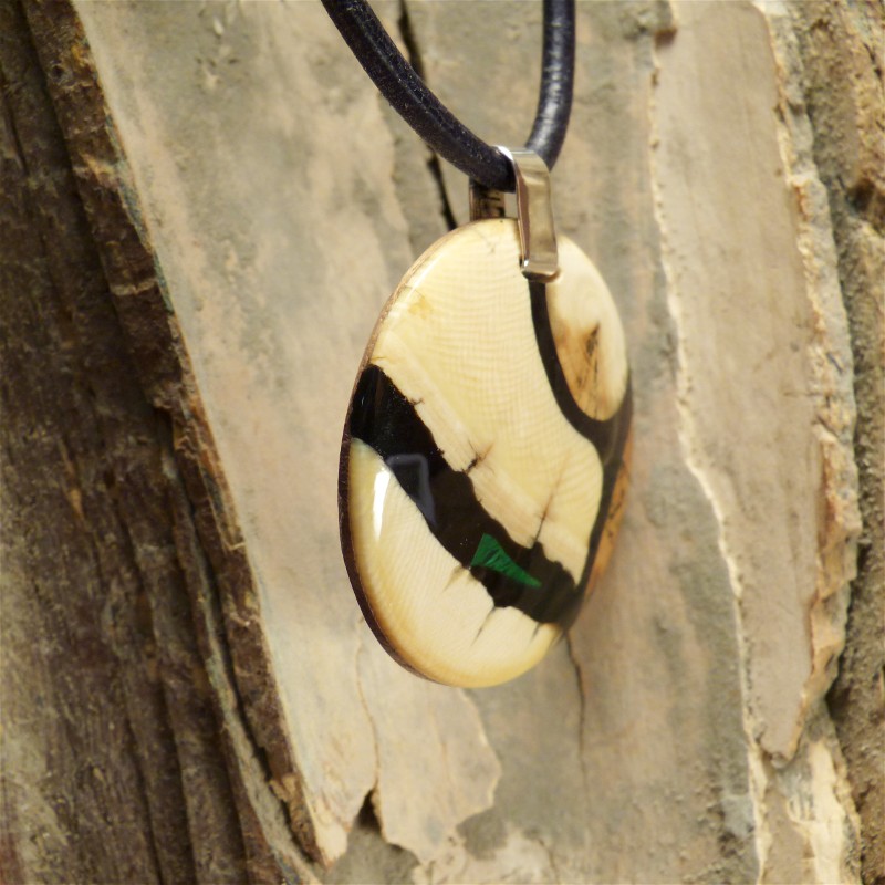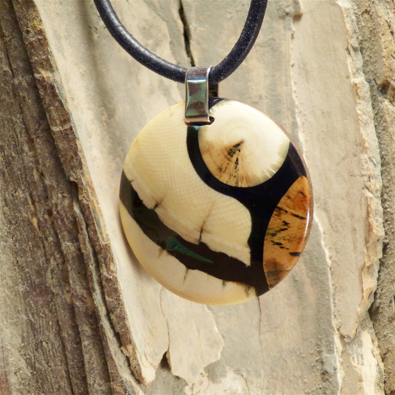 Stark gemaserter Scheibenanhänger aus cremefarbenem und braunem Mammut-Elfenbein