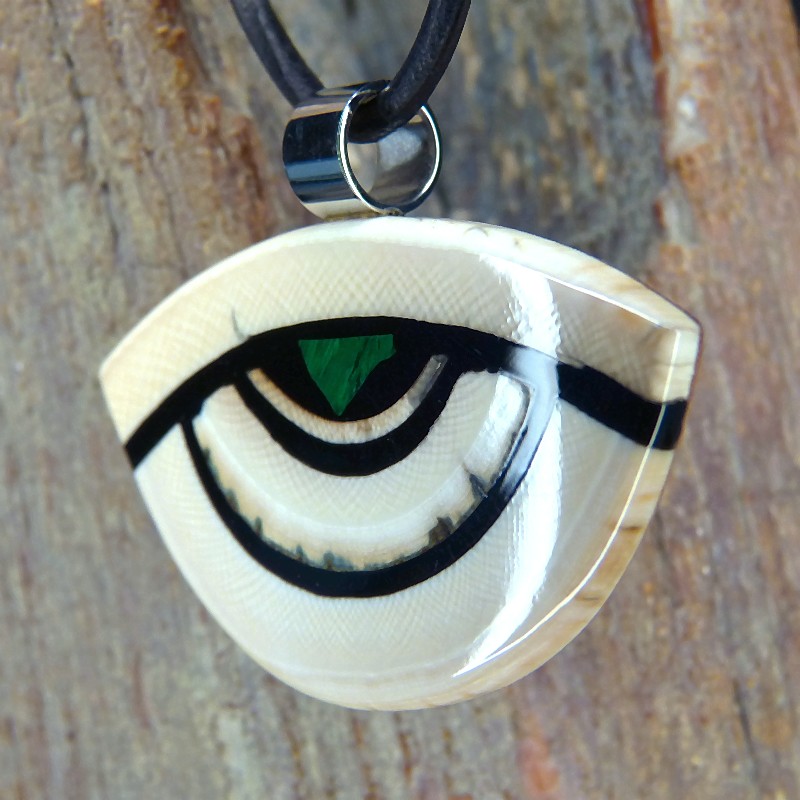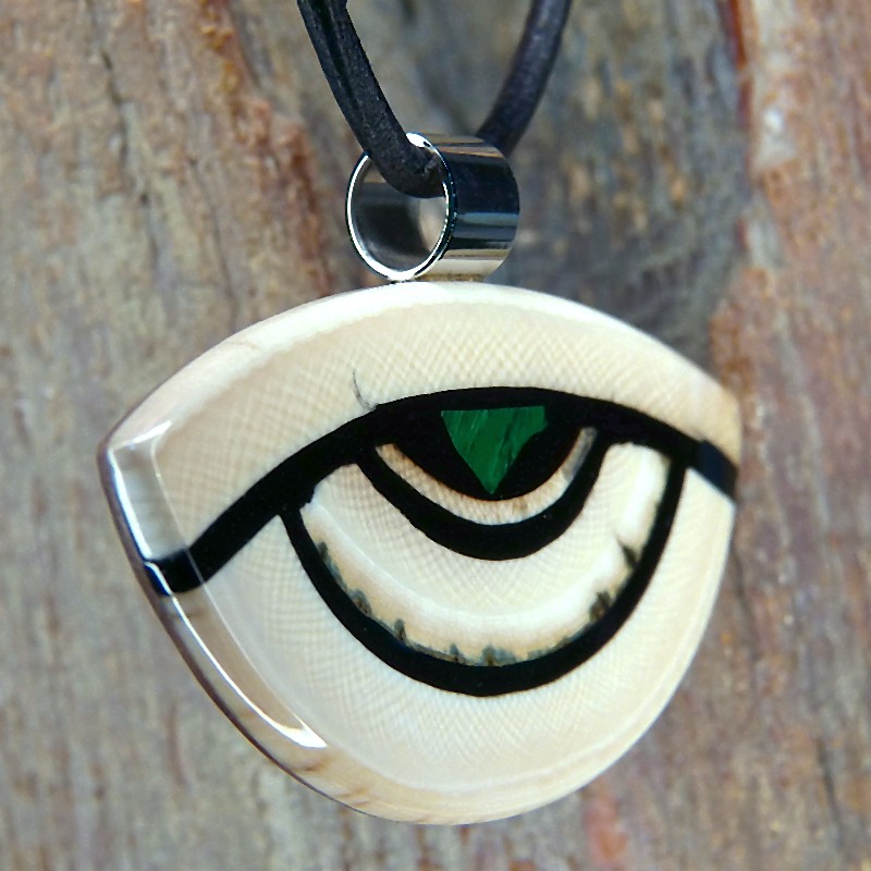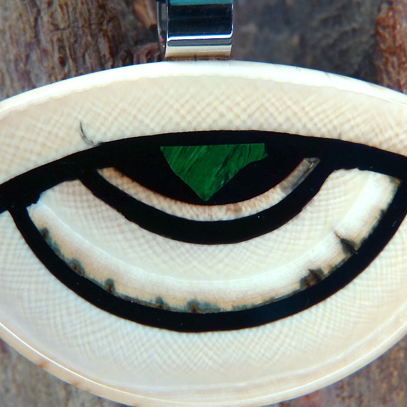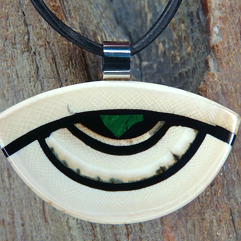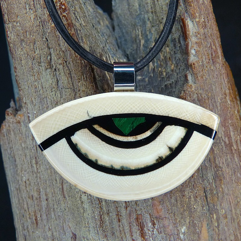Queranhänger aus cremefarbenem Mammut-Elfenbein mit toller Maserung und eingearbeiteter Intarsie aus rekonstruiertem Malachit.