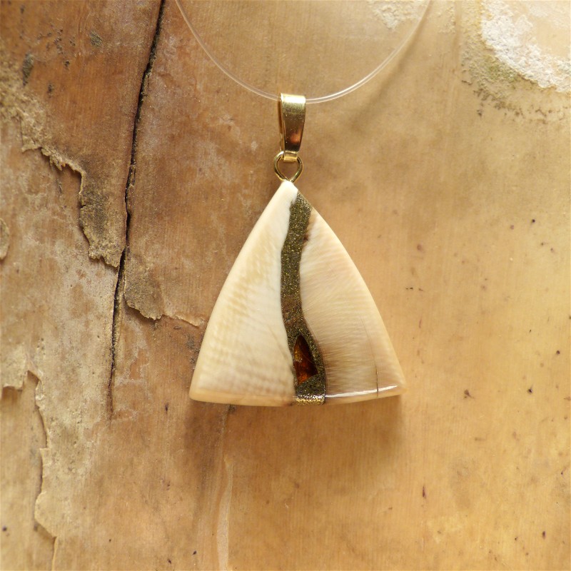 Anhänger aus cremefarbigem Mammut-Elfenbein und einer Intarsie aus echtem