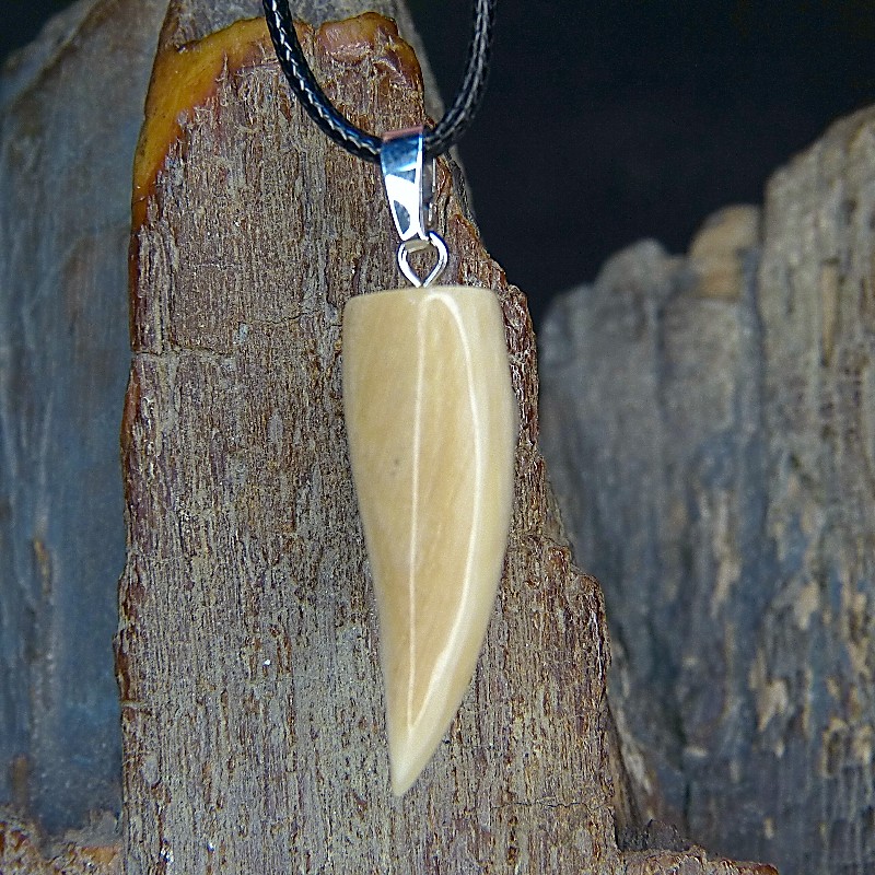 Dicker Zahnanhänger aus bräunlichem Mammut-Elfenbein mit schöner Maserung.