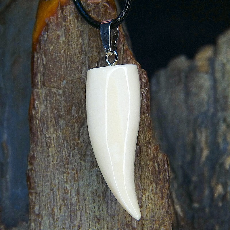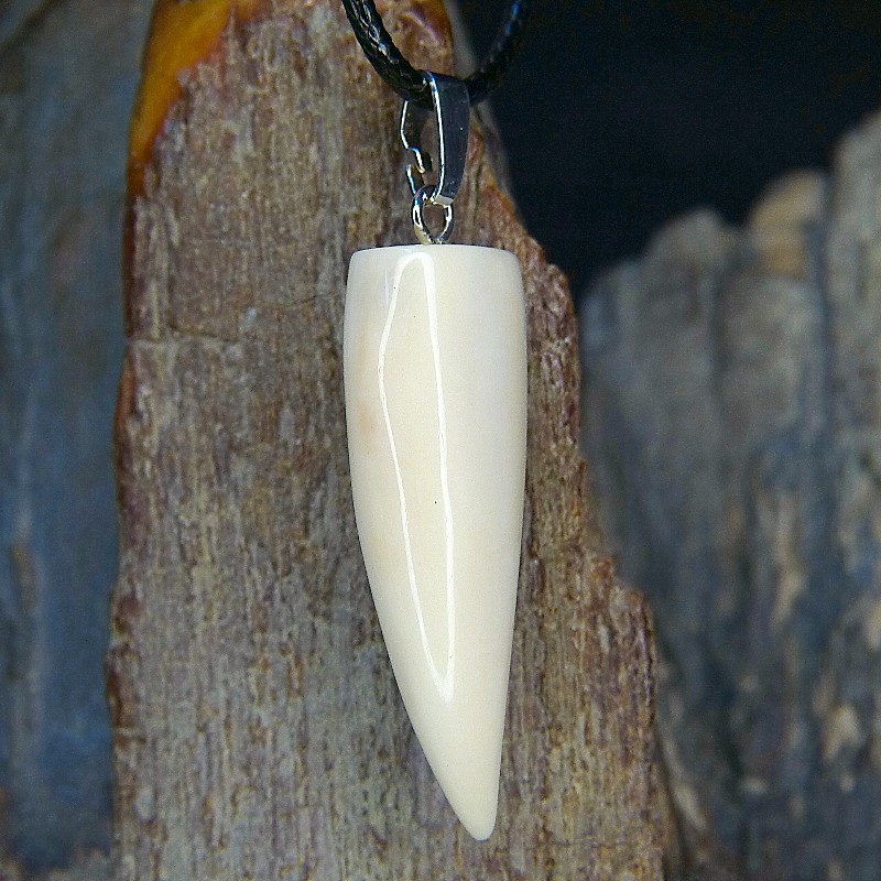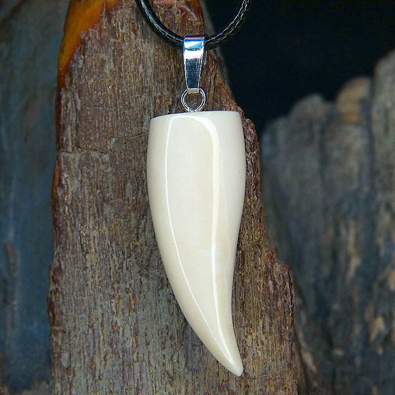 Dicker Zahnanhänger aus cremigem Mammut-Elfenbein mit leichten "Wasserflecken".