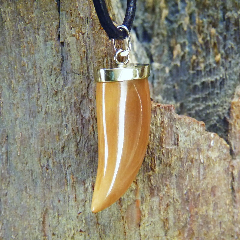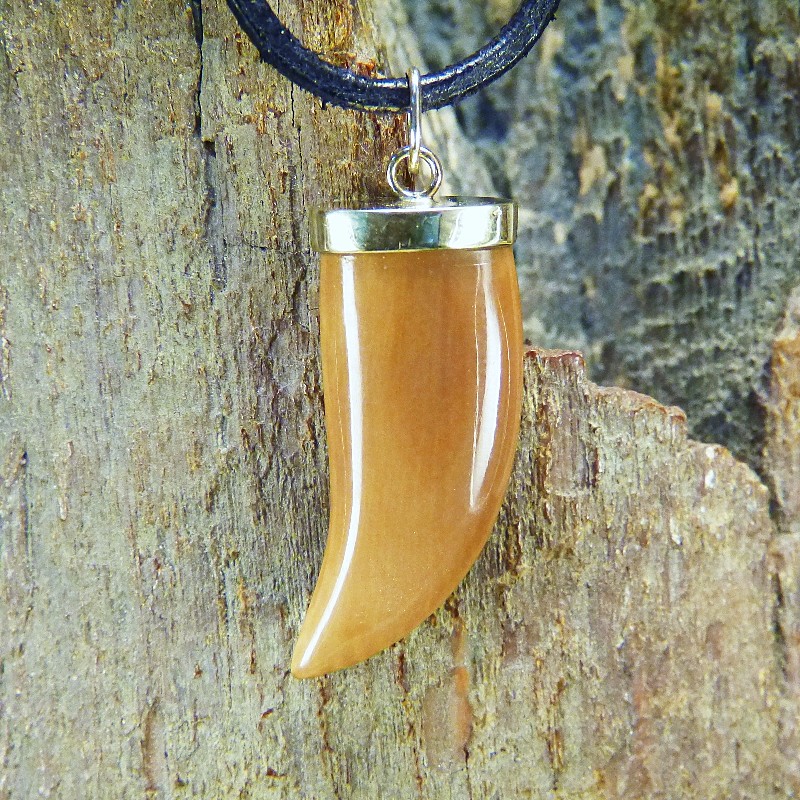 Zahnanhänger aus dunkelbraunem Mammutelfenbein in einer Fassung aus 333/-er Gold.