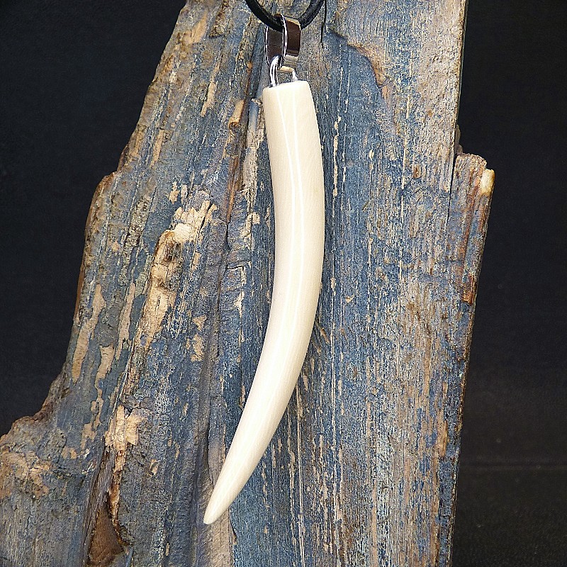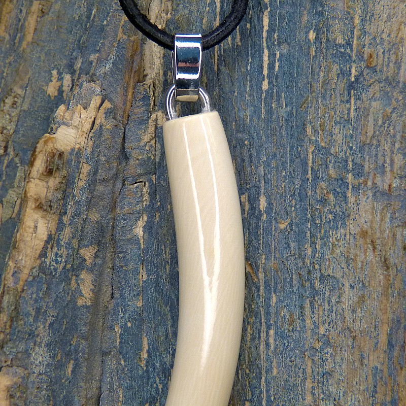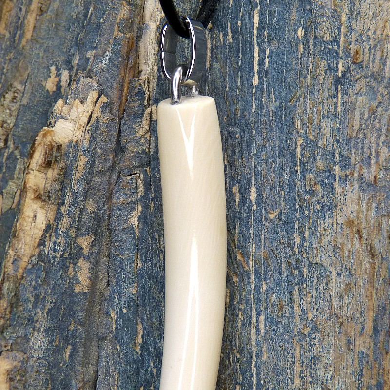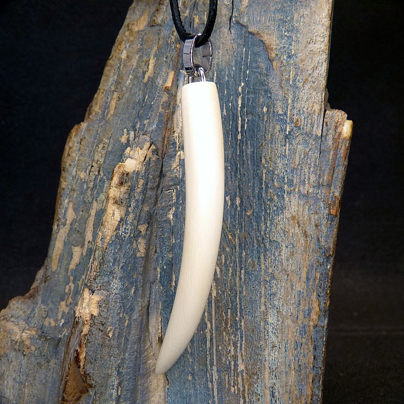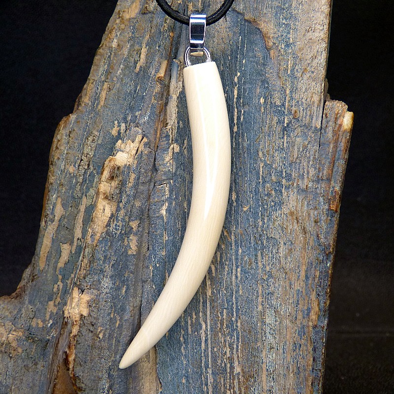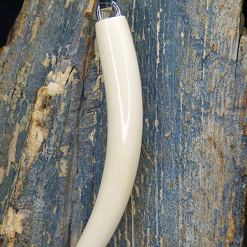 Großer, schlanker Zahnanhänger aus massivem Mammut-Elfenbein mit leicht cremiger Färbung und feiner Maserung.