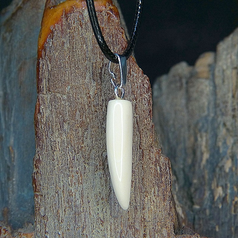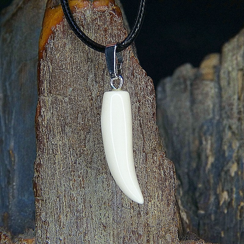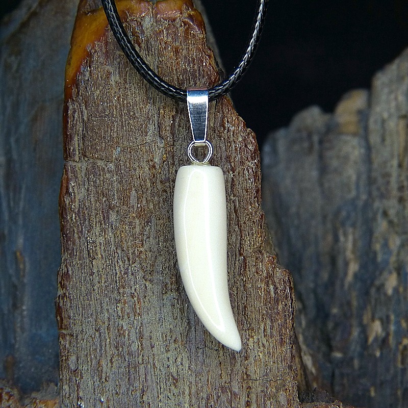 Kleiner Zahnanhänger aus hellem Mammut-Elfenbein mit leichter Maserung.