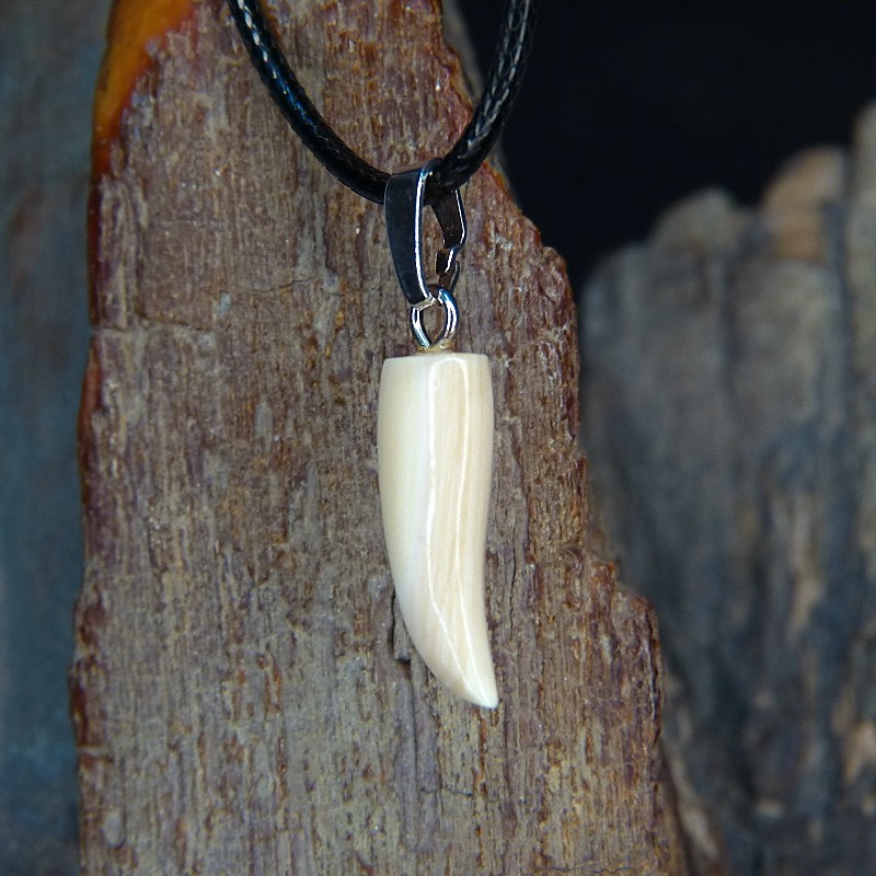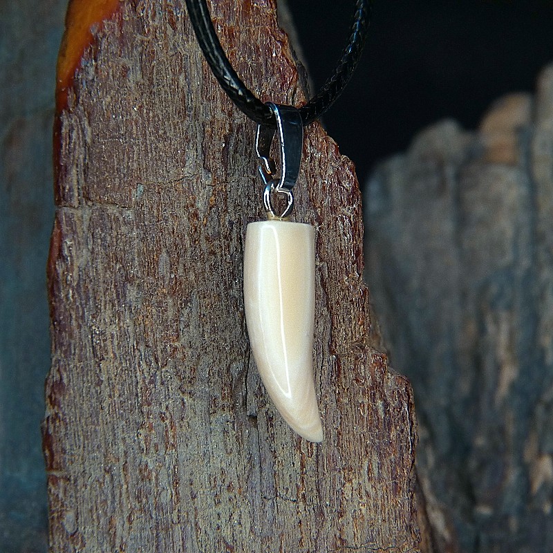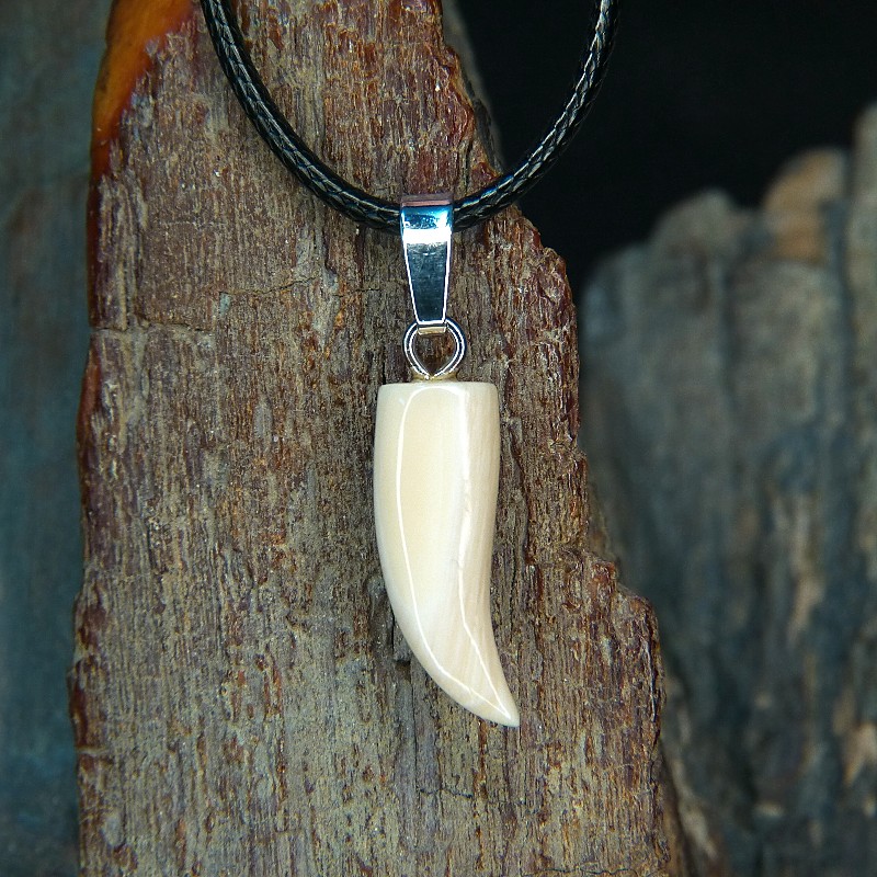 Kleiner Zahnanhänger aus cremigem Mammut-Elfenbein mit leichter Maserung.