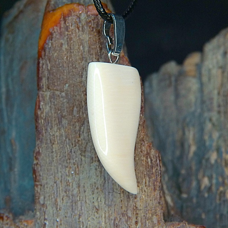 Zahn-/Krallenanhänger aus hellem Mammut-Elfenbein mit feiner Maserung.