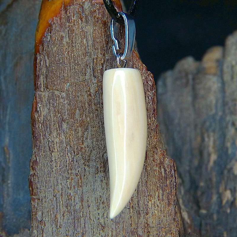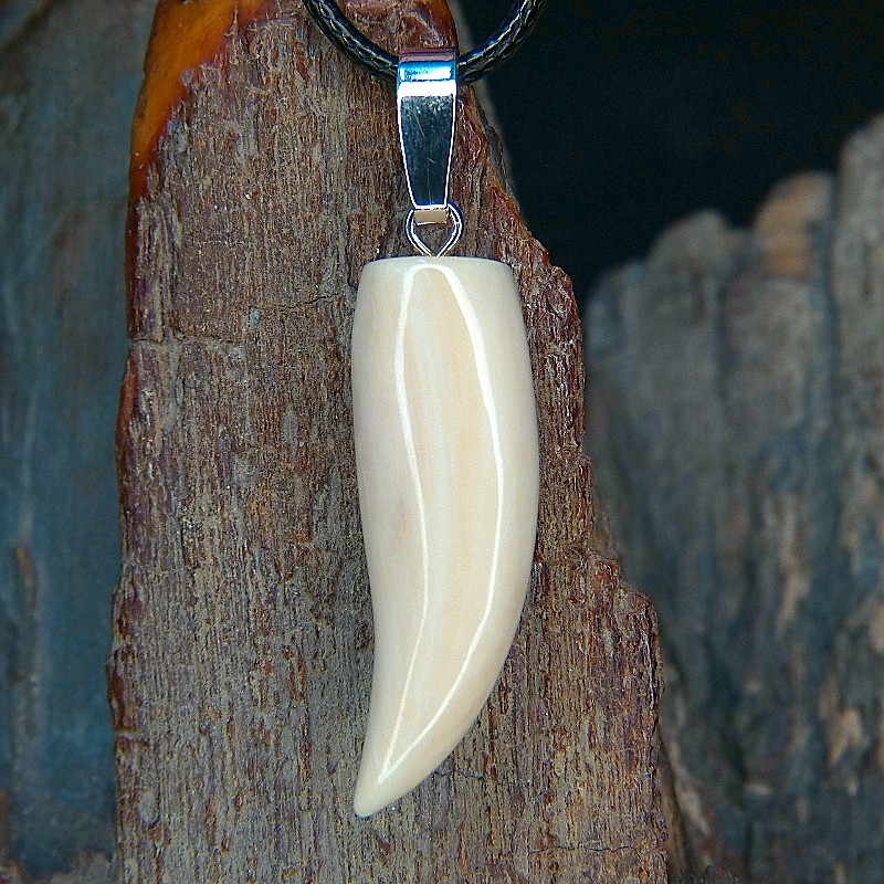 Zahnanhänger aus cremigem Mammut-Elfenbein mit feiner Maserung.