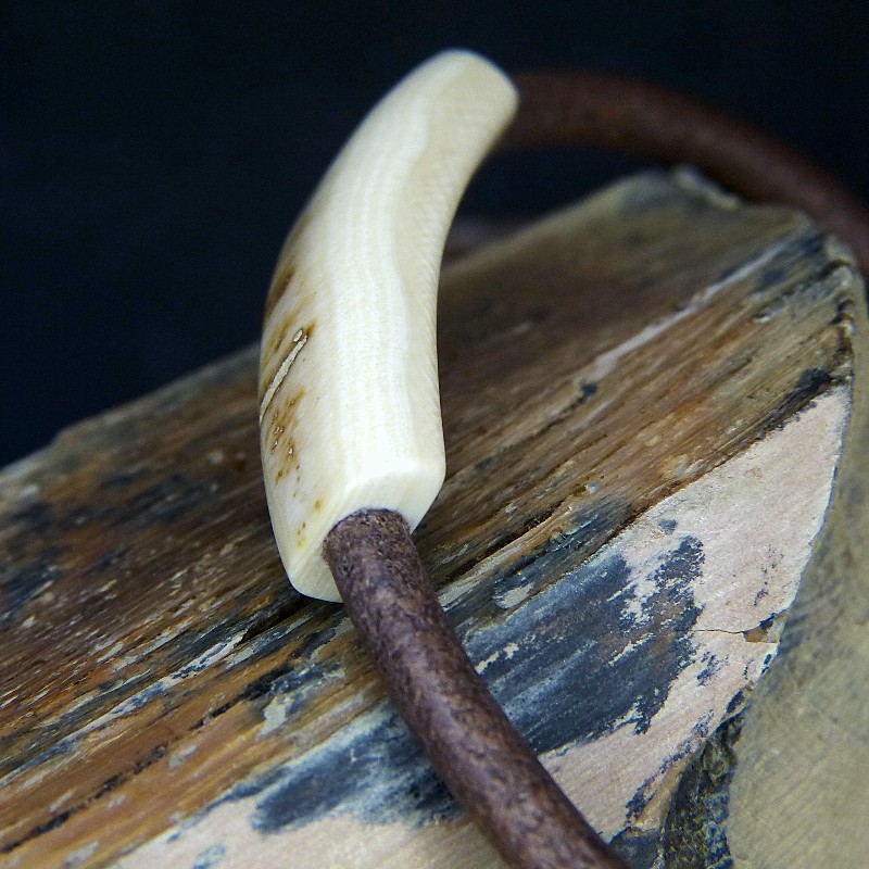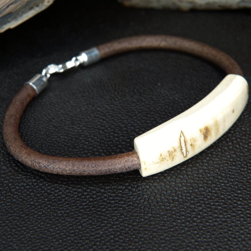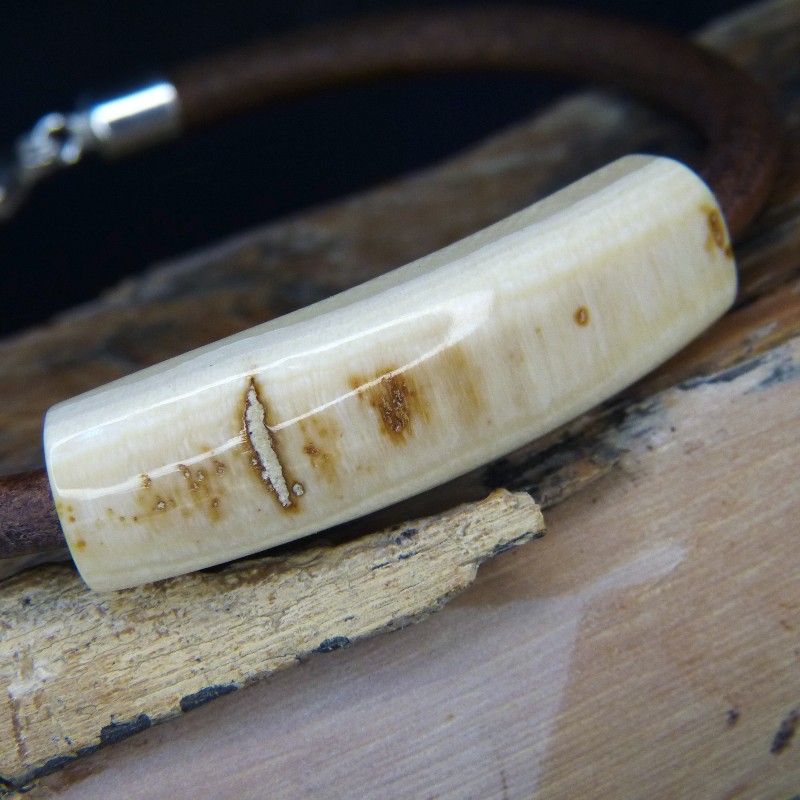 Braunes Lederarmband aus cremigem Mammut-Elfenbein mit natürlicher bräunlicher Rindenstruktur.