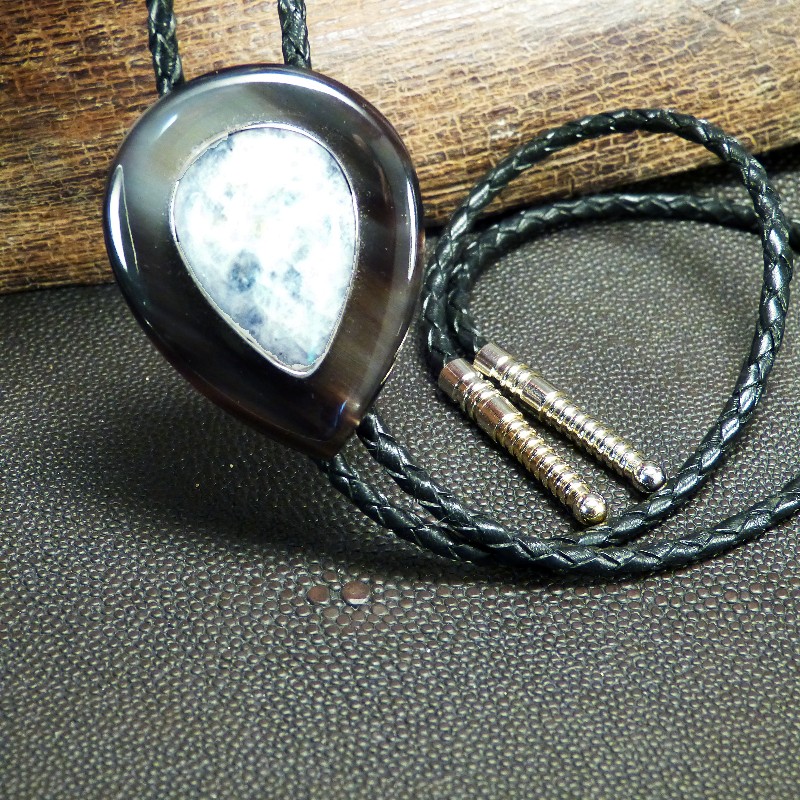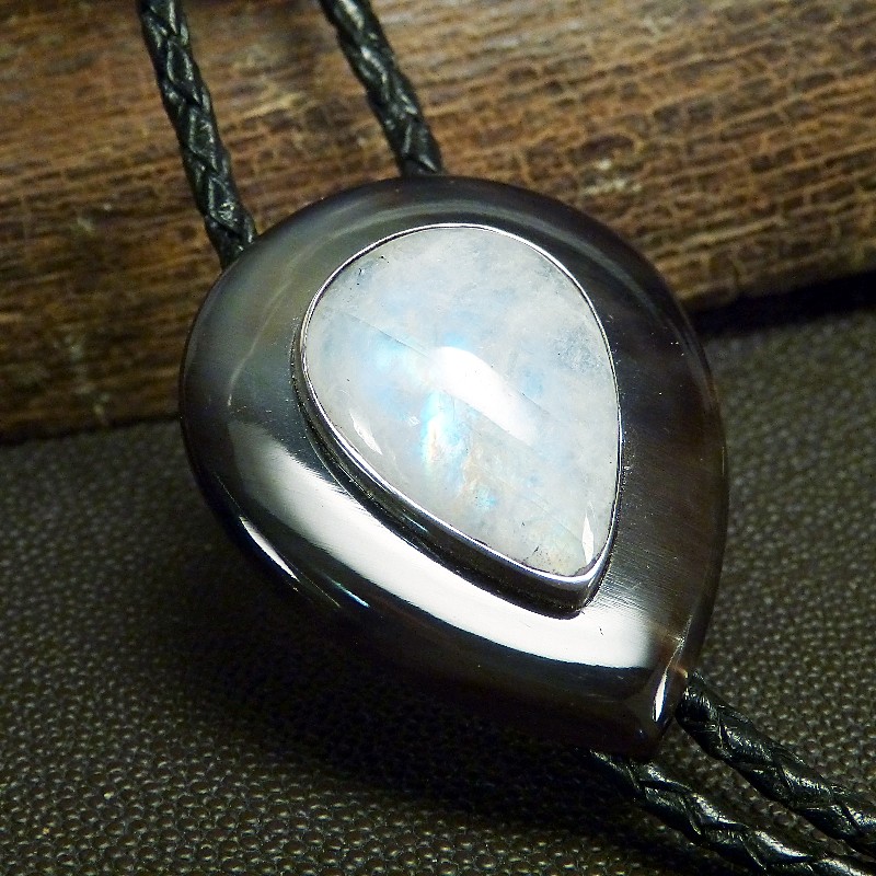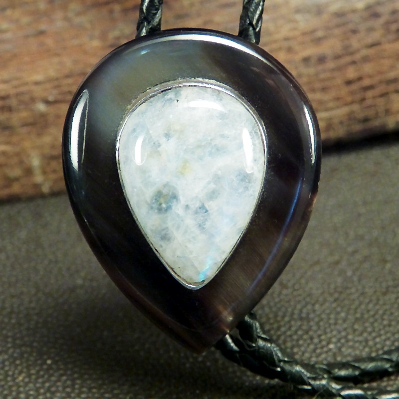 Bola aus dunklem Horn, kombiniert mit einer Intarsie aus in Silber 925/- eingefasstem Mondstein.