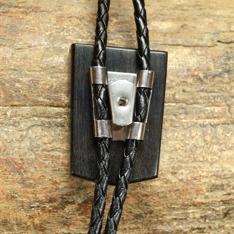 Schwarze Bola mit eingearbeitetem Pyrit in einer Gesamtgröße von ca. 46 x 33mm. Schwarzes Flechtband mit patentierter Verstellmöglichkeit.