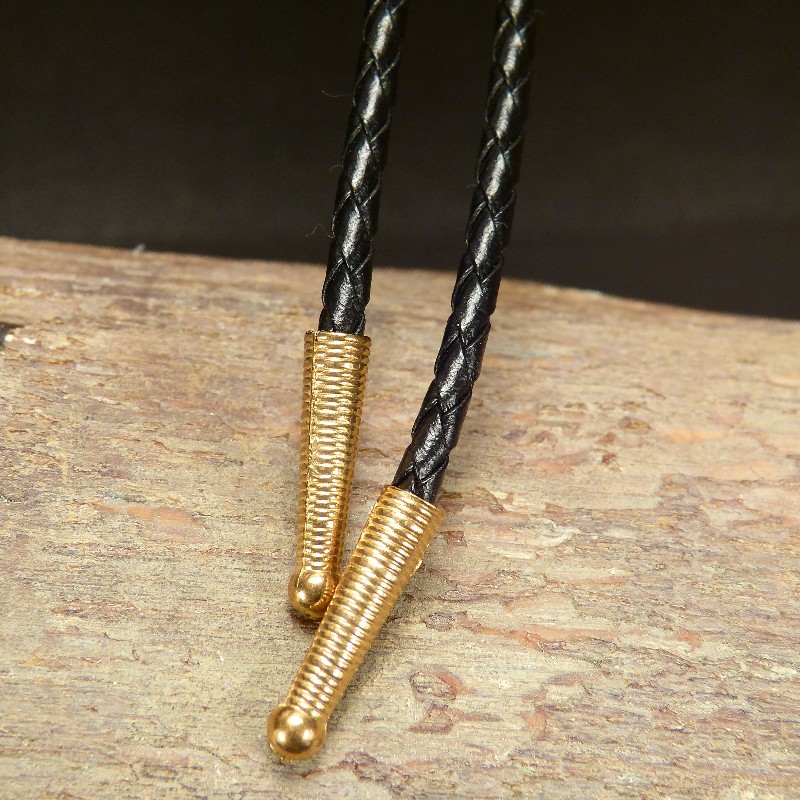 Die Bola hat eine Gesamtgröße von ca. 40x30mm bei einer Stärke von ca. 15mm. Auf der Rückseite wurde das Material zur Stabilisierung mit Nussbaumholz hinterlegt. Die patentierte Verstellmöglichkeit schont das schwarze Flechtlederband.
