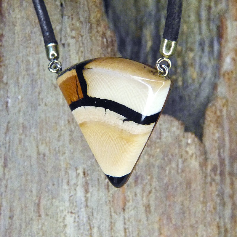 Dreieckcollier aus fossilem Mammut-Elfenbein mit tollen Färbungen uns ausdruckstarker Maserung.