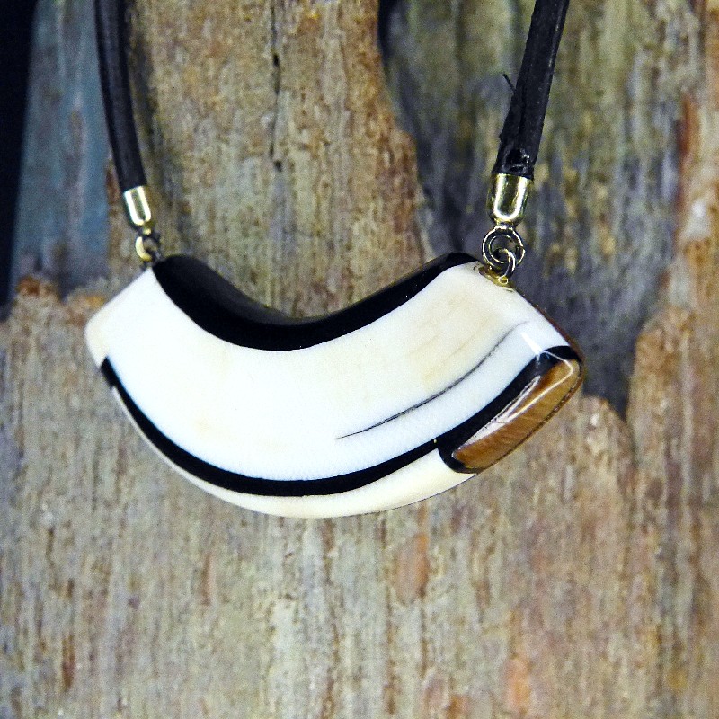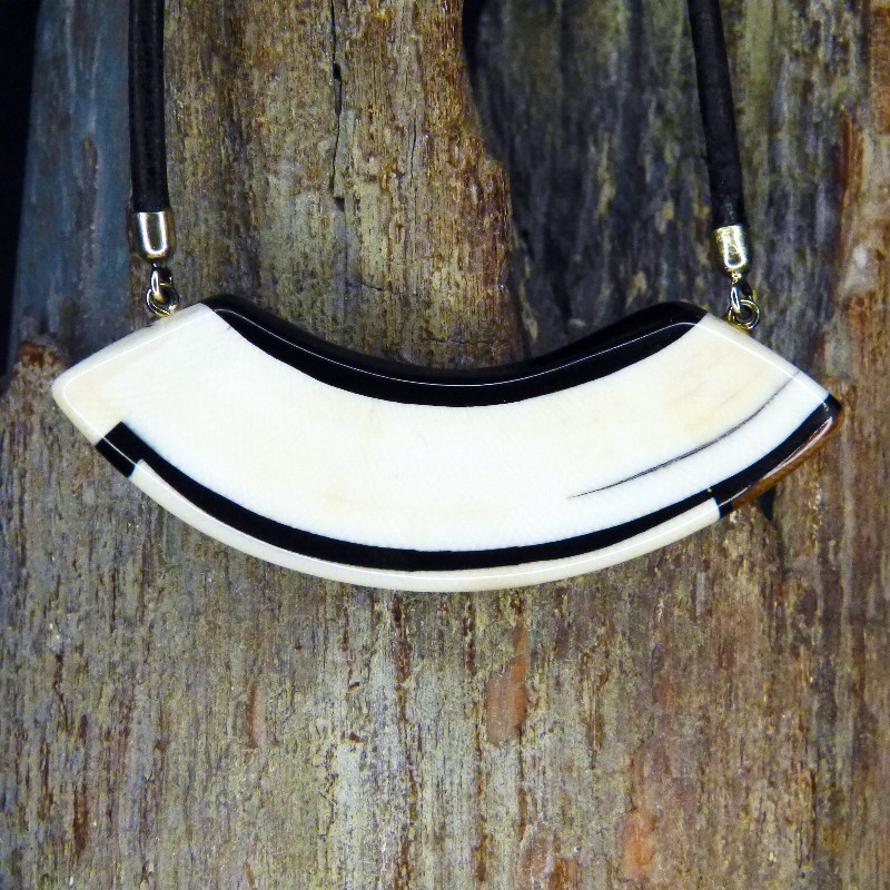 Bogencollier aus hellem und braunem Mammut-Elfenbein mit feiner Maserung.