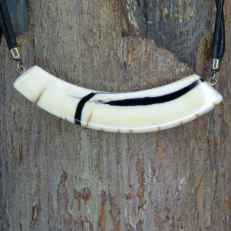 Bogencollier aus hellem Mammut-Elfenbein mit schöner Rindenstruktur und leichten Färbungen.