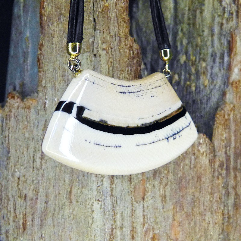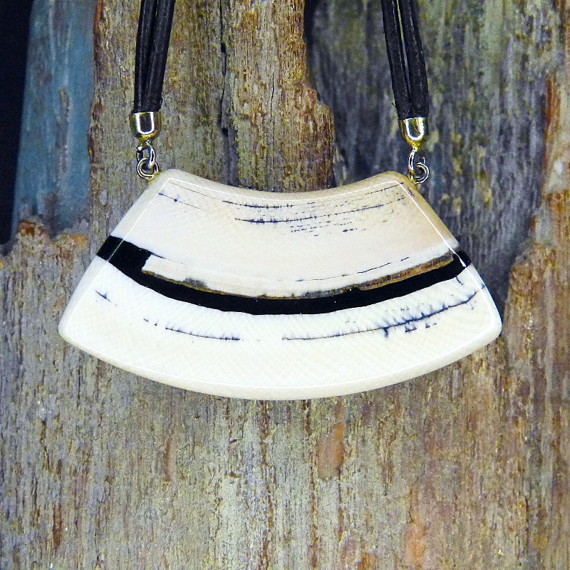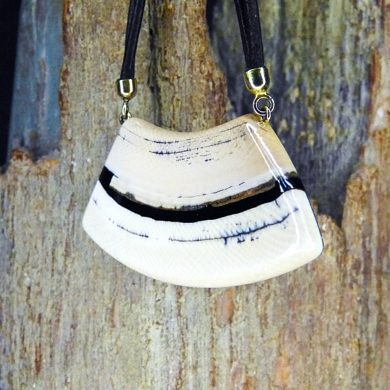 Bogencollier aus cremefarbenem Mammut-Elfenbein mit starker Maserung.