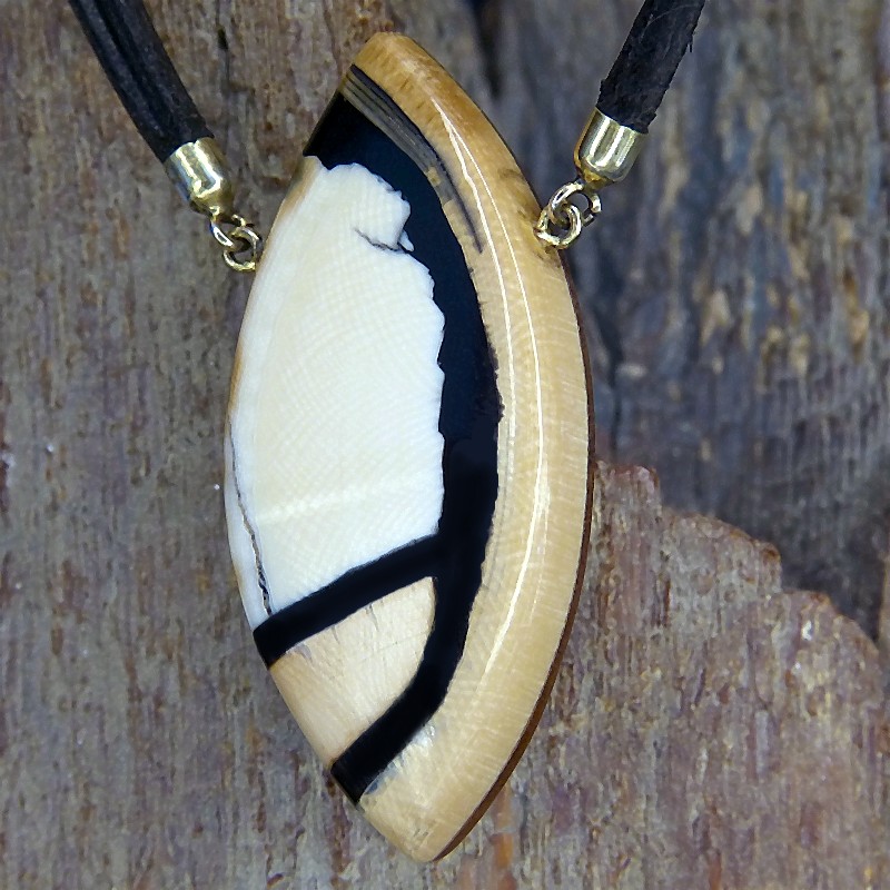 Collier aus fein gemasertem creme/braunen Mammut-Elfenbein in Navetteform geschliffen.