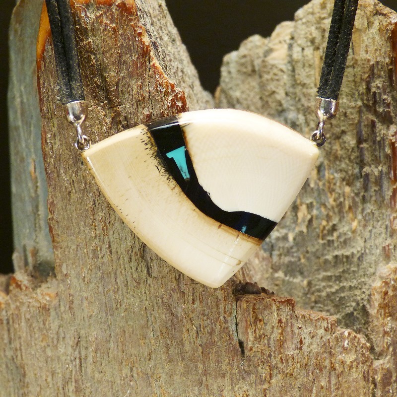 Dreieckig geschliffenes Collier aus cremefarbenem Mammut-Elfenbein mit schöner Maserung.
