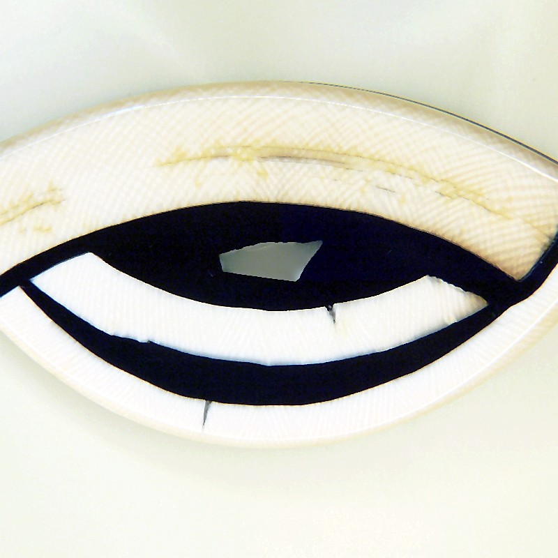 Es hat eine Größe von ca. 67 x 35 mm und wurde auf der Rückseite zur Stabilisierung mit Nussbaumholz hinterlegt. Als Blickfang wurde zusätzlich eine kleine rekonstruierte Jade als Intarsie eingearbeitet. Inklusive dem schwarzen Lederband hat es eine Gesamtlänge von ca. 56 cm, Verschluss und Endkappen sind aus goldplattiertem Silber 925/- gefertigt.