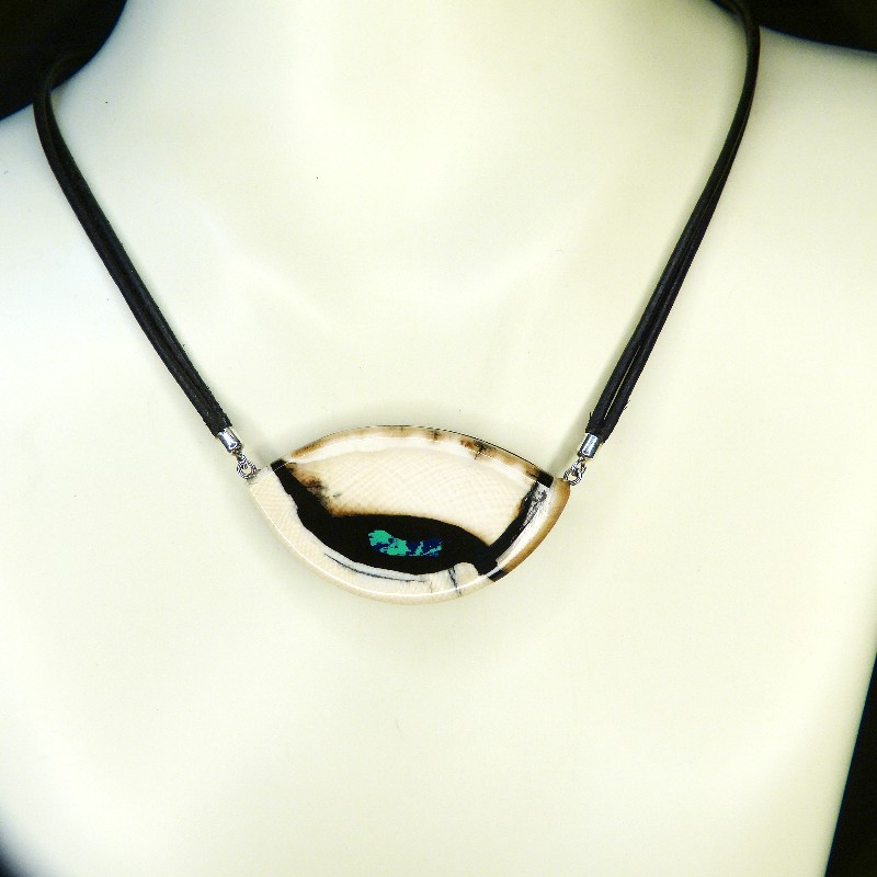 Stark gemasertes Collier aus cremigem Mammut-Elfenbein mit schöner Rindenfärbung.