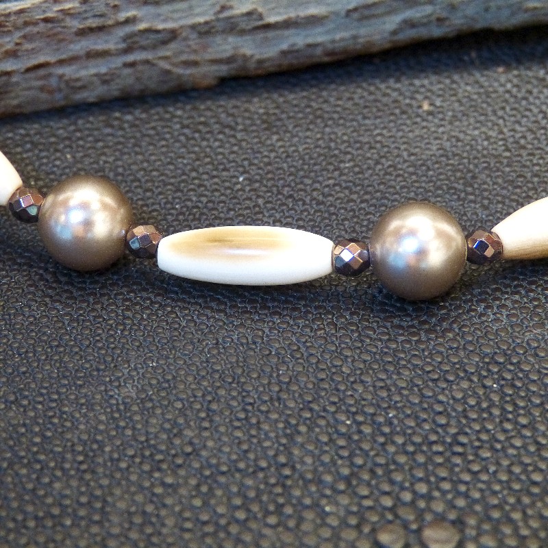 Collier aus ca. 18 mm langen und ca. 6,5 mm dicken ovalen Stäbchen aus cremefarbenem Mammut-Elfenbein mit schönen natürlichen Färbungen.