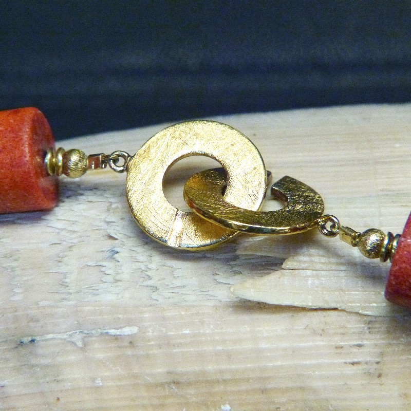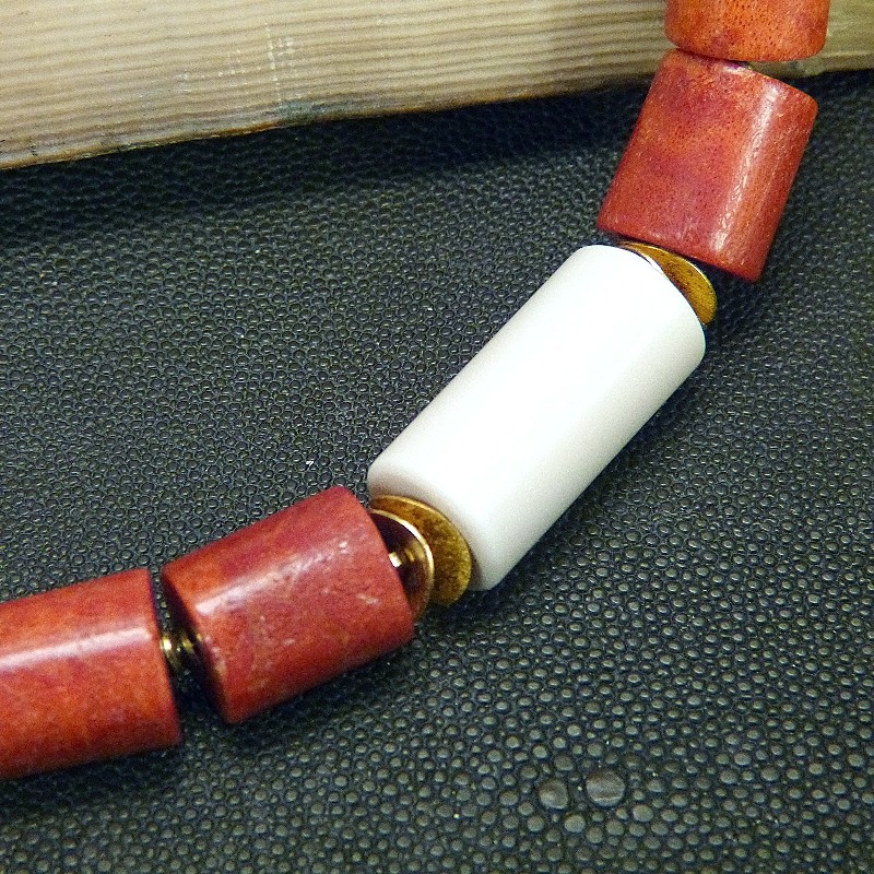 Auffällige Kette aus großen dunkelroten Schaumkoralle-Walzen mit glatter und polierter Oberfläche in einer Größe von ca. 15x18 mm.
