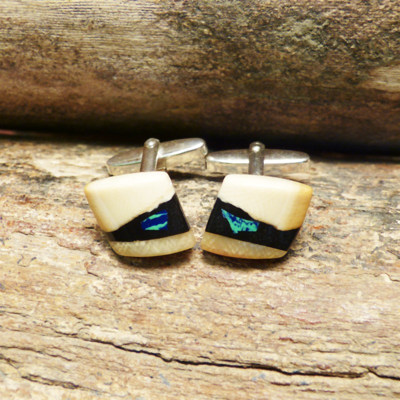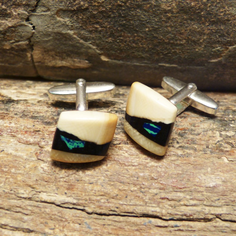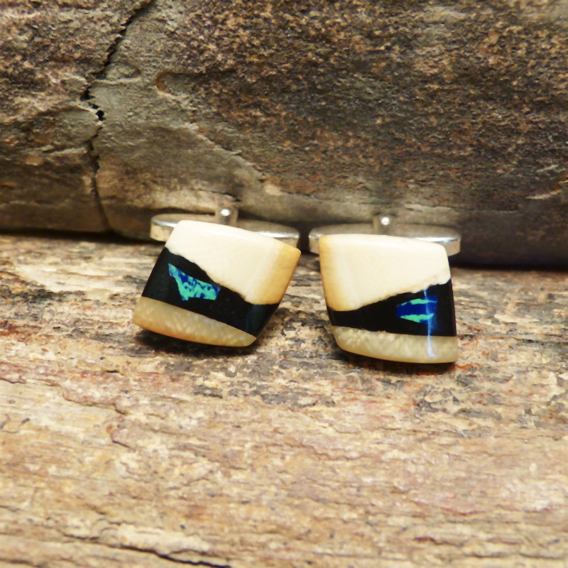Kantig geschliffene Manschettenknöpfe aus fein strukturiertem, schön gefärbtem