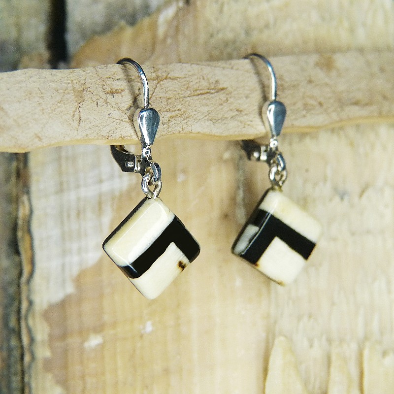 Sie erhalten ein Paar quadratisch geschliffene Ohrhänger aus Mammut-Elfenbein mit feiner Maserung.
