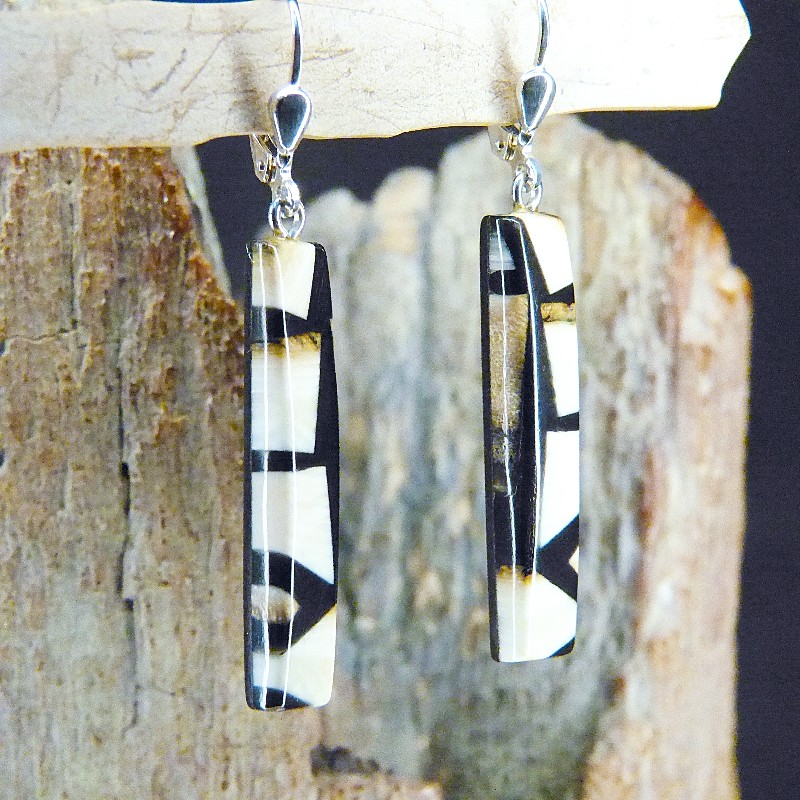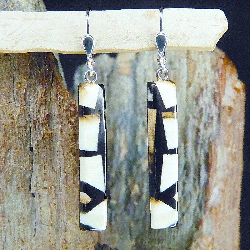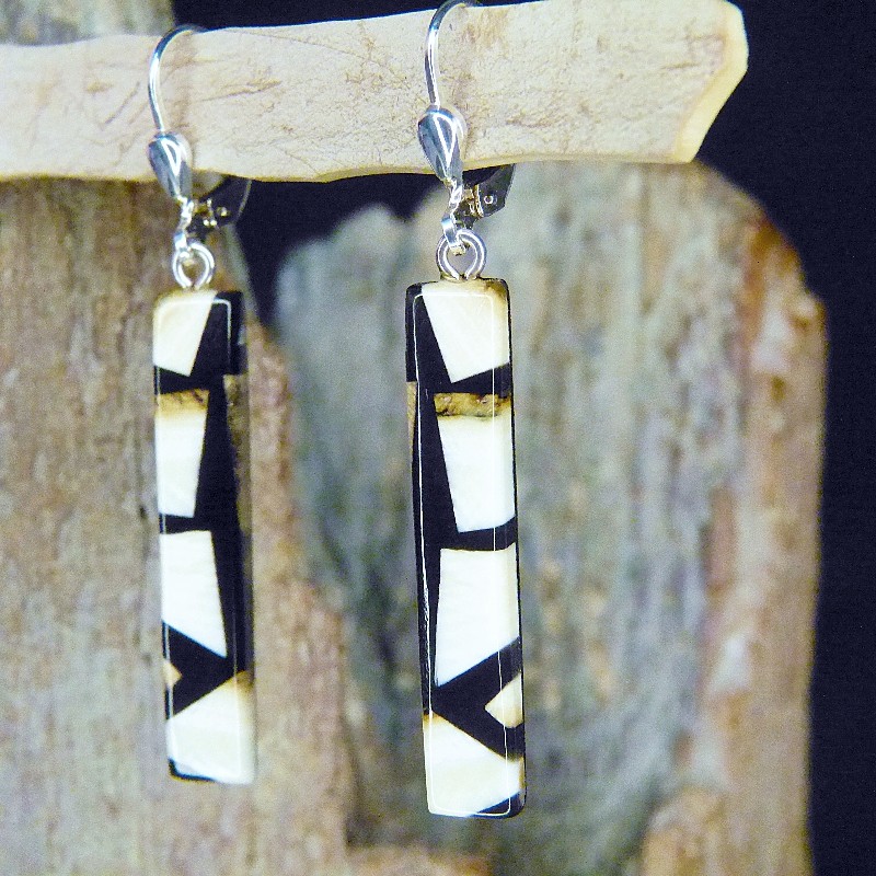 Längliche Ohrhänger aus Mammut-Elfenbein mit leichten Färbungen.