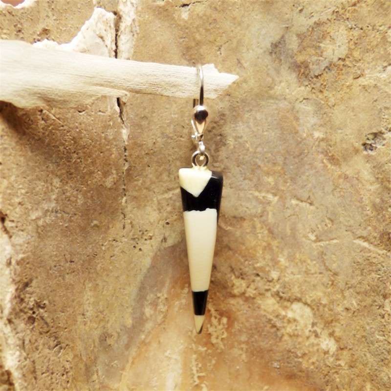 Mammutelfenbein in schwarz/weiß Optik. Die Rückseite wurde zur Stabilisierung mit Ebenholz