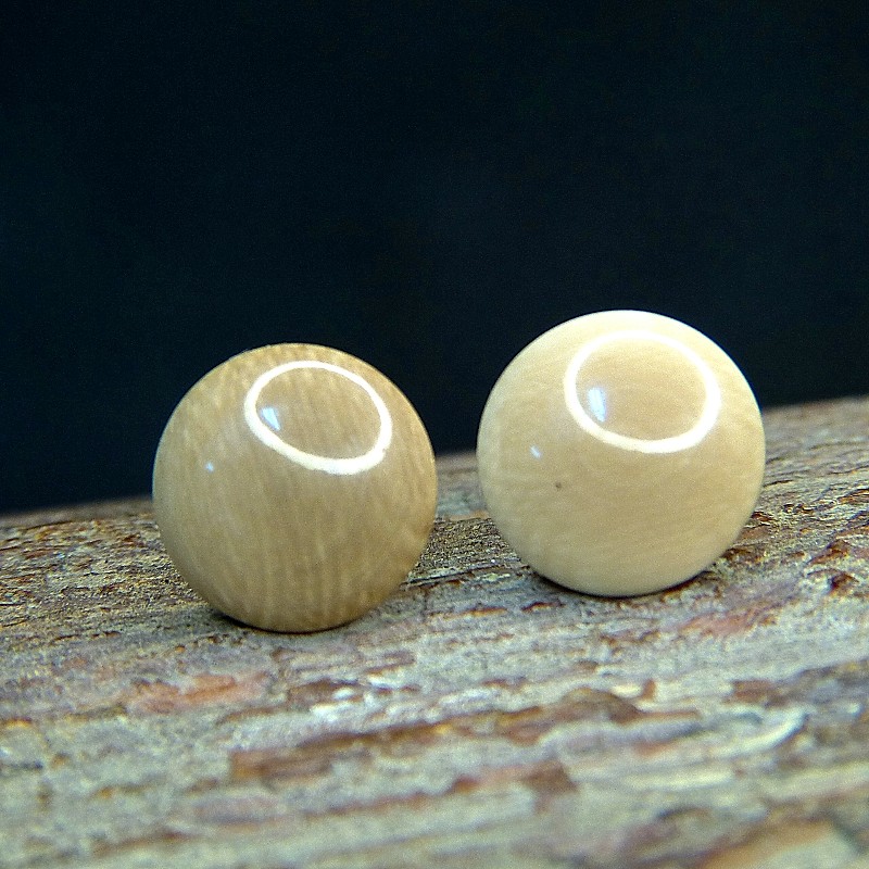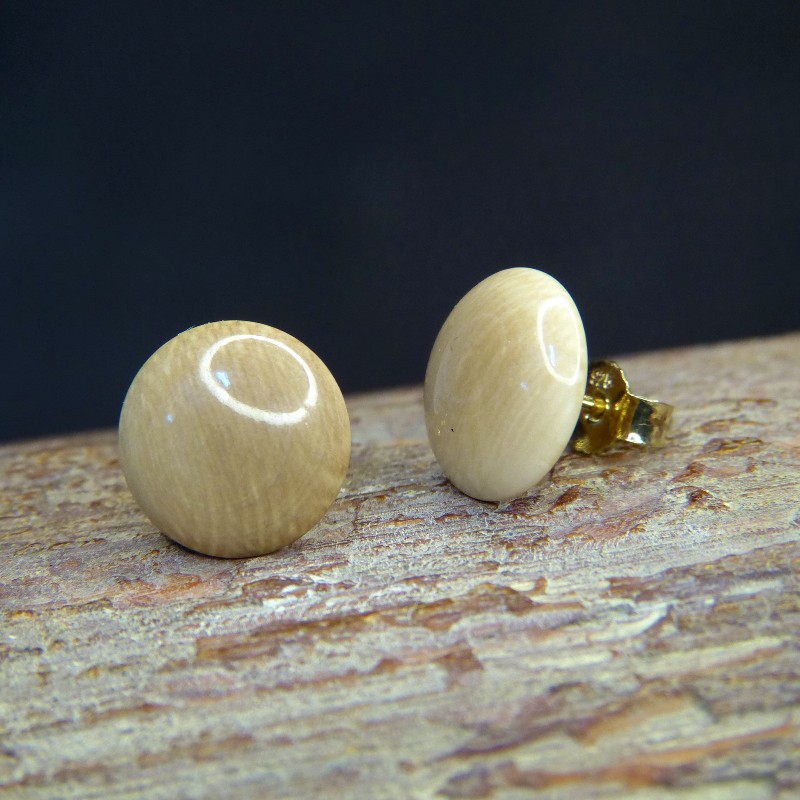 Gewölbte Bouton-Ohrstecker aus dunklerem Mammutelfenbein in einer Größe von ca. 12mm.