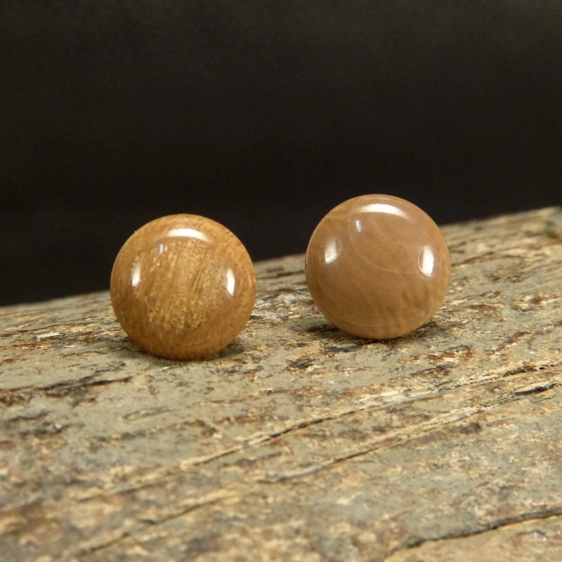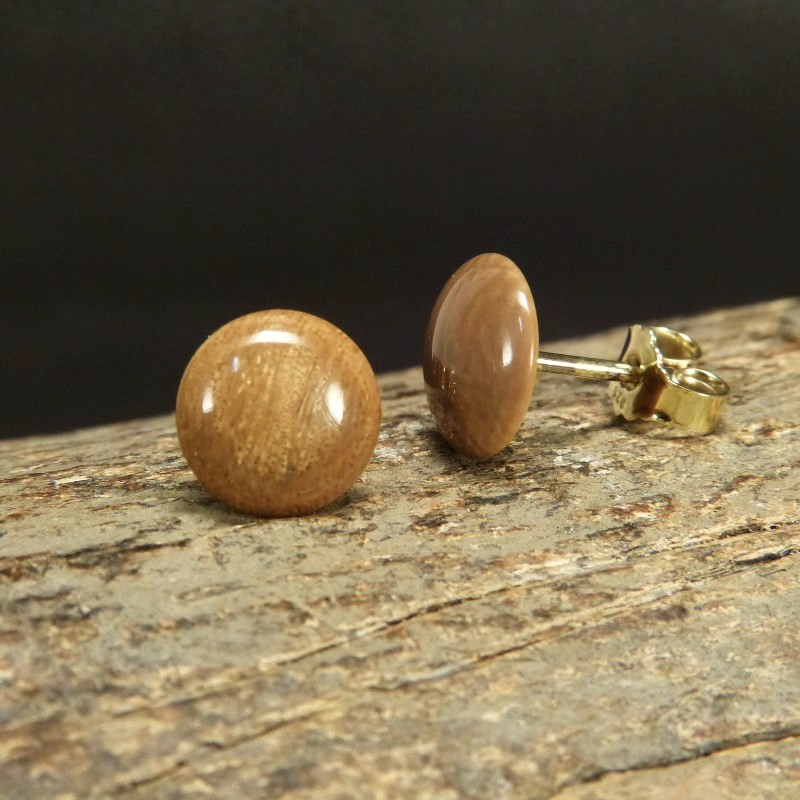 Gewölbte Bouton-Ohrstecker aus braunem Mammutelfenbein in einer Größe von ca.10mm.