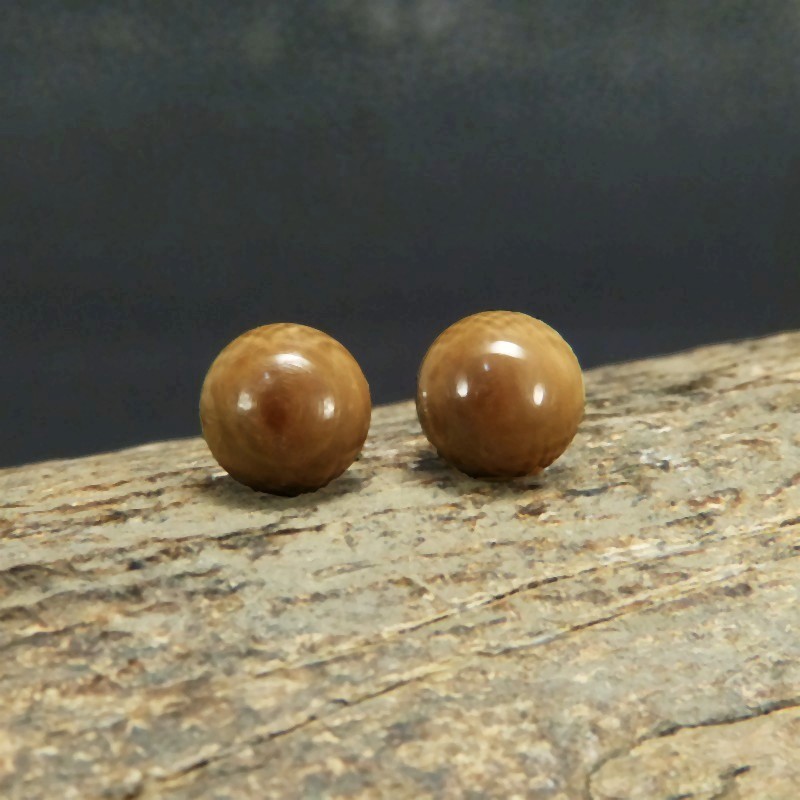 Gewölbte Bouton-Ohrstecker aus braunem Mammutelfenbein in einer Größe von ca. 10mm.